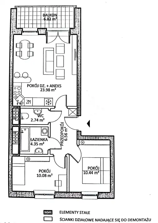 - Charakterystyka mieszkania 58.15 m2, 3 pokoje