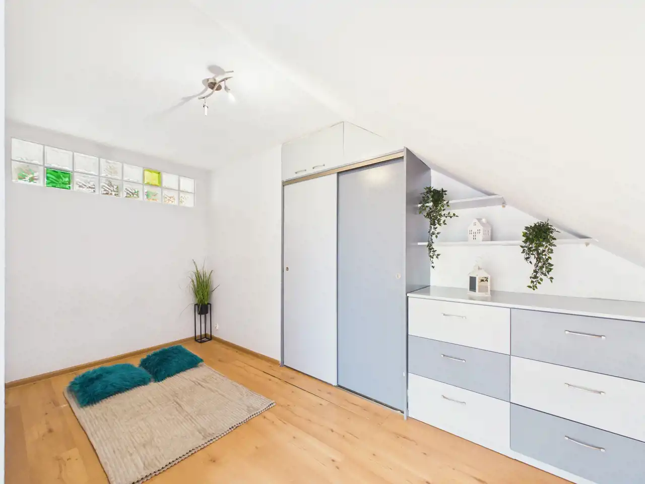 - dwa przestronne pokoje ze skosami, oferujące wiele możliwości aranżacyjnych – mogą pełnić funkcję sypialni, pokoi dziecięcych, biura lub strefy relaksu,