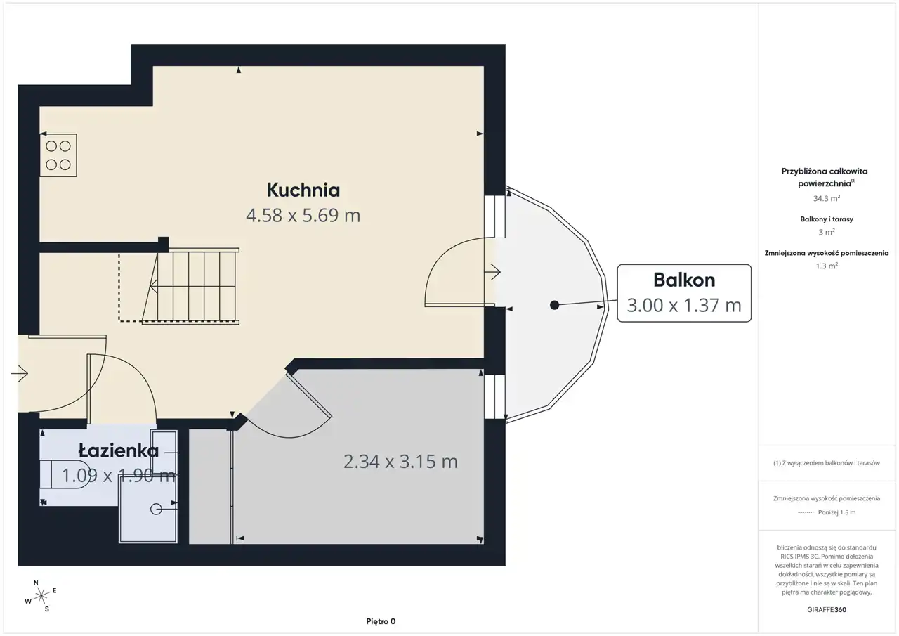 - wyjście na zaokrąglony balkon o powierzchni 3 m²,
