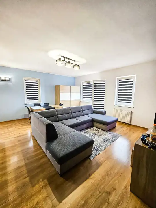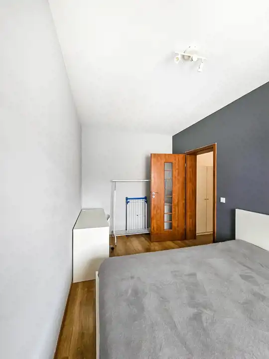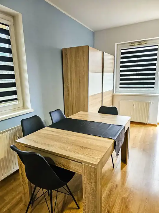 - słonecznego salonu z aneksem kuchennym, z którego jest wyjście na balkon