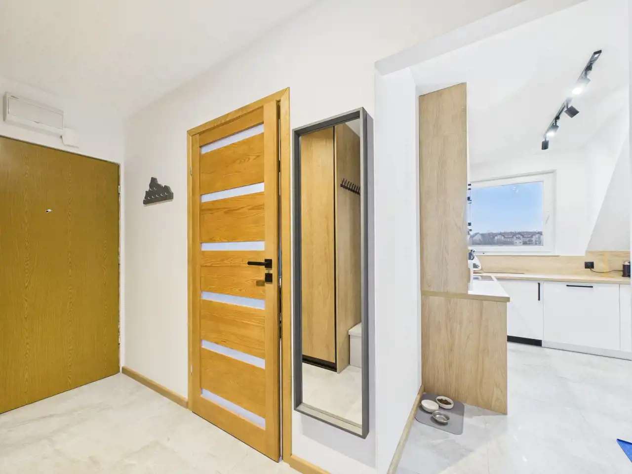 Mieszkanie jest jasne i przytulne oraz rozkład dwustronny co gwarantuje świetne doświetlenie, natomiast system klimatyzacji daje możliwość szybkiego schłodzenia w upalne dni. Dodatkowo istnieje możliwość zakupu garażu wolnostojącego pod budynkiem o powierzchni użytkowej 19,00 m² za kwotę 100 000,00 zł.
