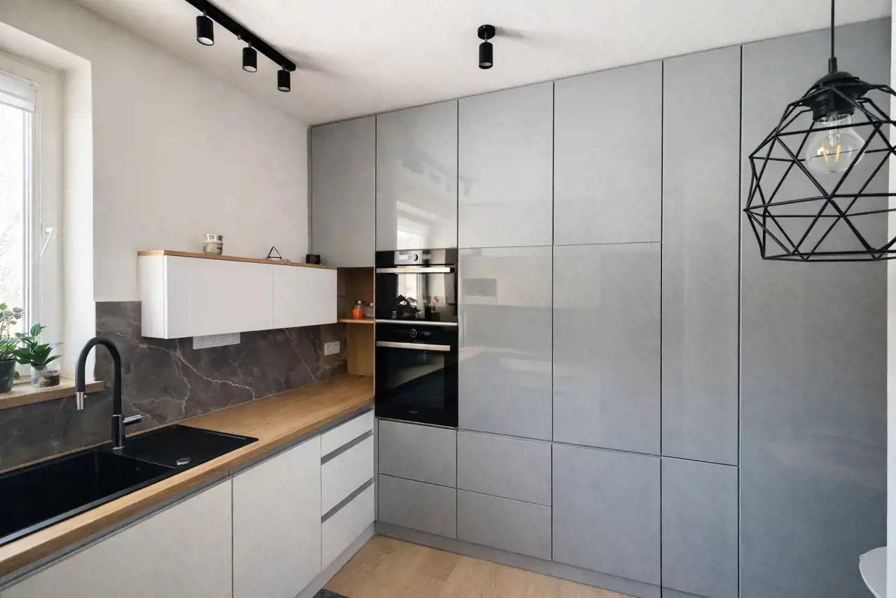 Kuchnia z wysokiej klasy zabudową i sprzętem AGD renomowanych marek w cenie mieszkania
