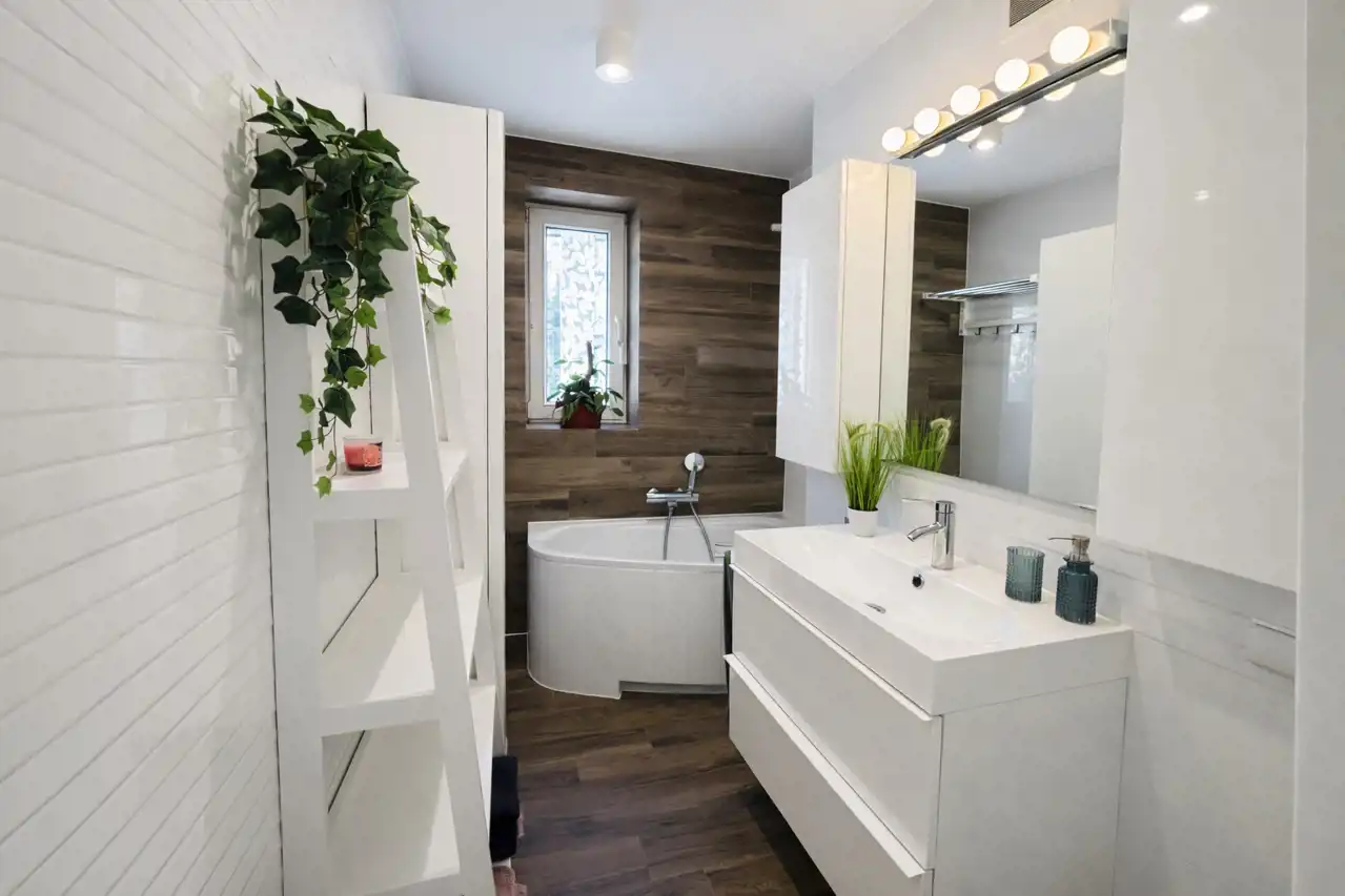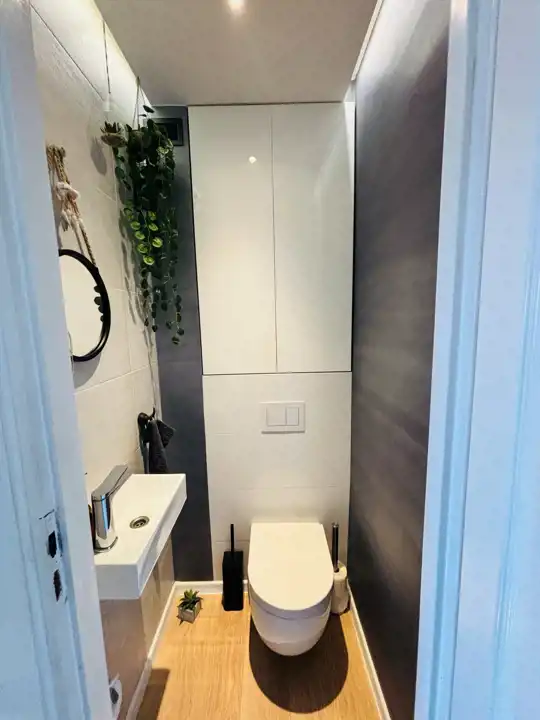 Łazienka i WC w eleganckiej glazurze i gresie — wszystko świeże i gotowe do użytku