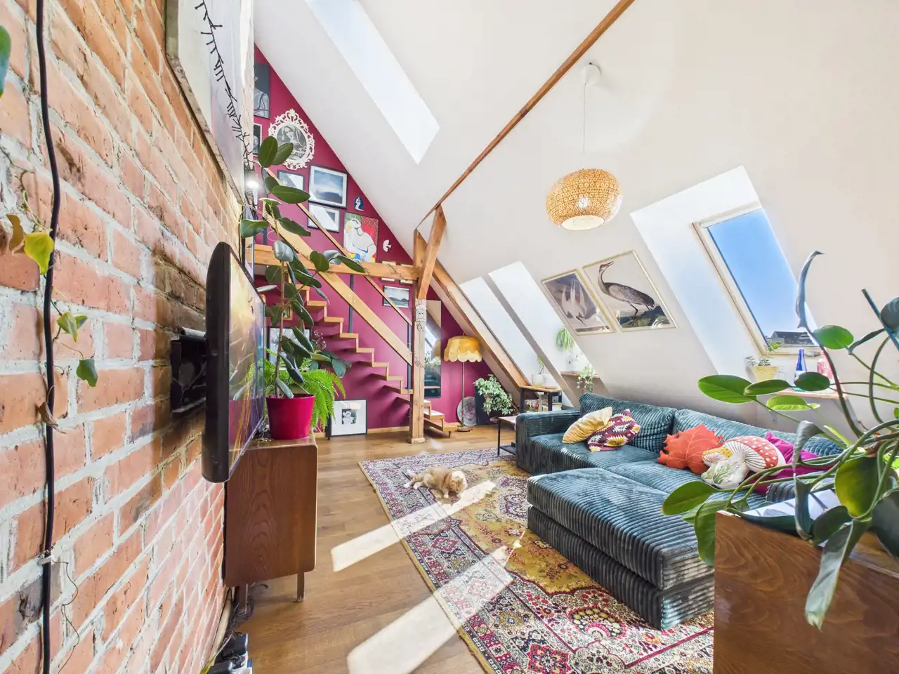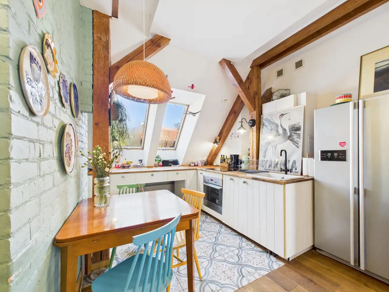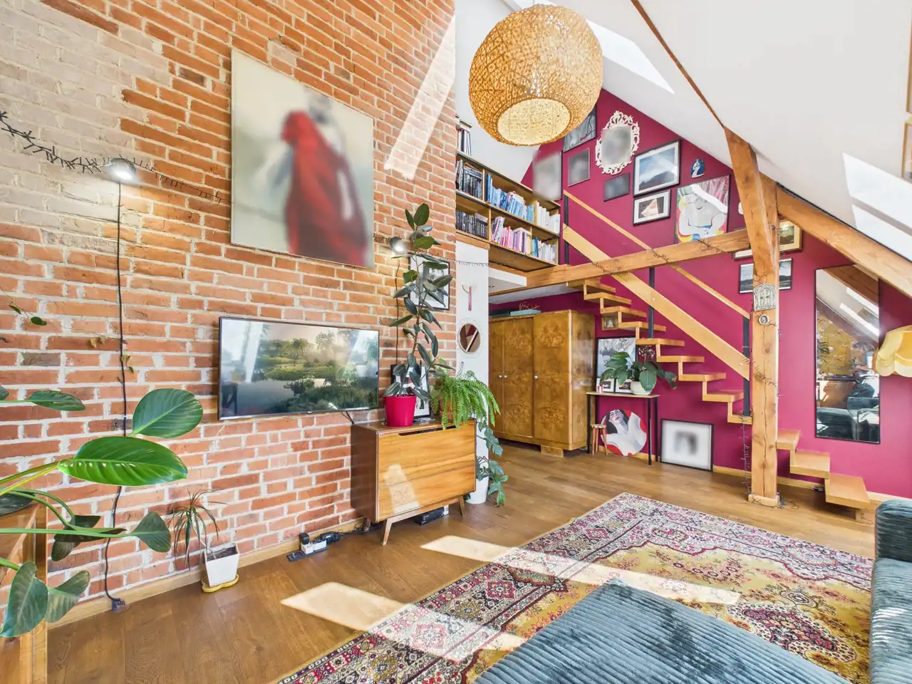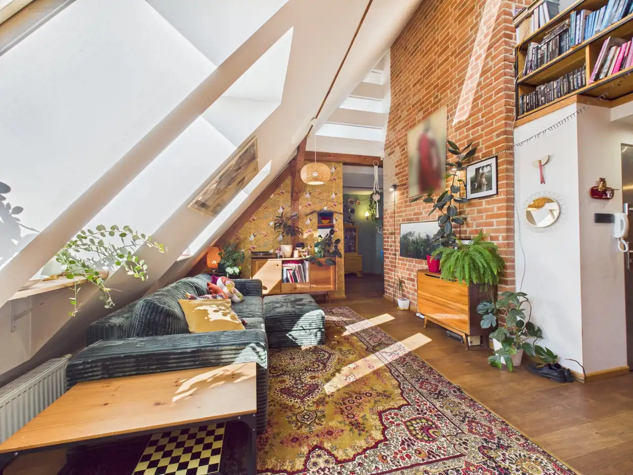 Ten unikalny apartament to przykład doskonałego połączenia współczesności z charakterem zabytkowej architektury. Położony w centrum miasta, zachwyca przemyślaną aranżacją, w której nowe materiały – stal i drewno – zostały umiejętnie zestawione z oryginalną cegłą oraz odsłoniętymi, drewnianymi belkami konstrukcyjnymi. Właściciel zadbał o spójność estetyczną i funkcjonalność – nowoczesne materiały nie dominują, lecz subtelnie współgrają z oryginalnymi elementami, tworząc harmonijną całość.