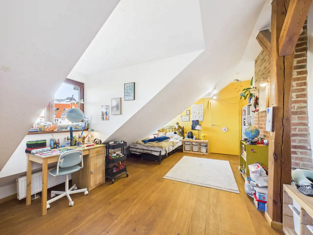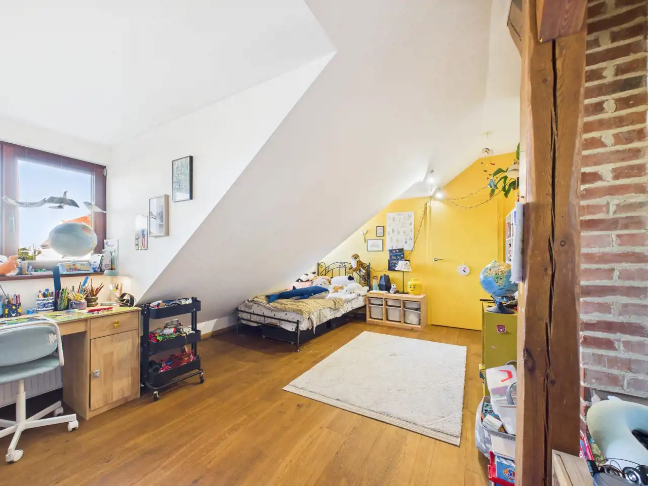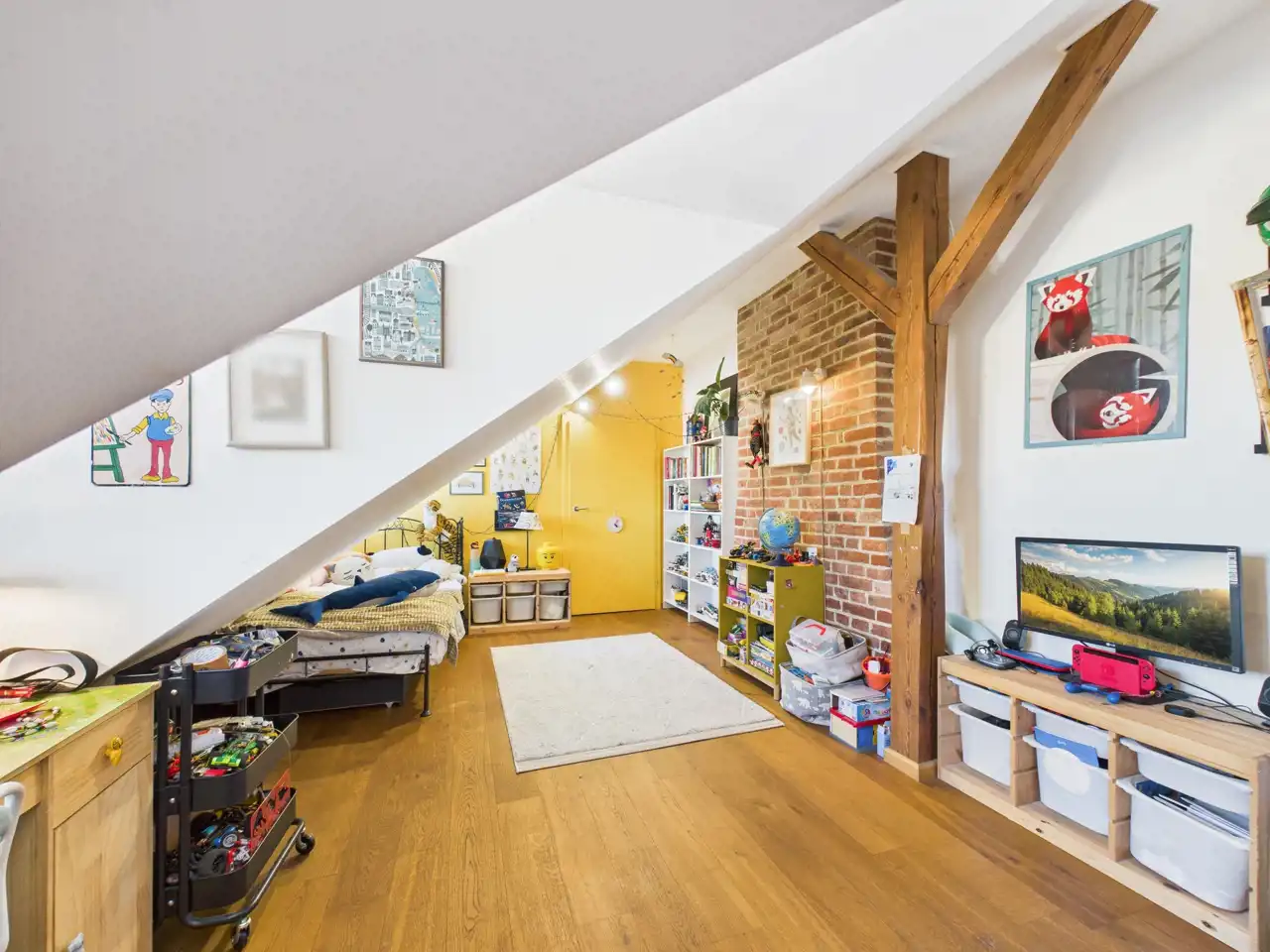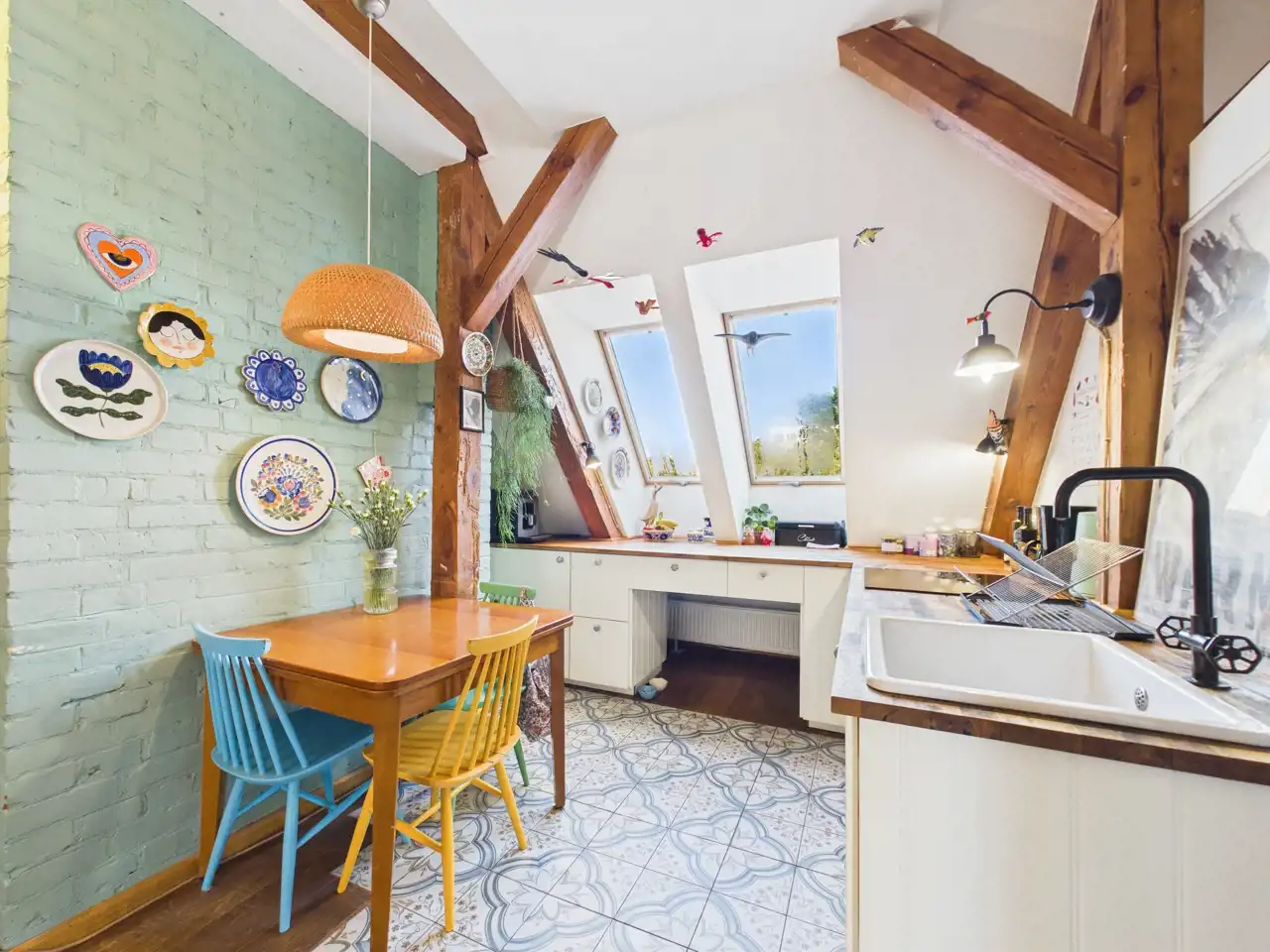 Ten unikalny apartament to przykład doskonałego połączenia współczesności z charakterem zabytkowej architektury. Położony w centrum miasta, zachwyca przemyślaną aranżacją, w której nowe materiały – stal i drewno – zostały umiejętnie zestawione z oryginalną cegłą oraz odsłoniętymi, drewnianymi belkami konstrukcyjnymi. Właściciel zadbał o spójność estetyczną i funkcjonalność – nowoczesne materiały nie dominują, lecz subtelnie współgrają z oryginalnymi elementami, tworząc harmonijną całość.