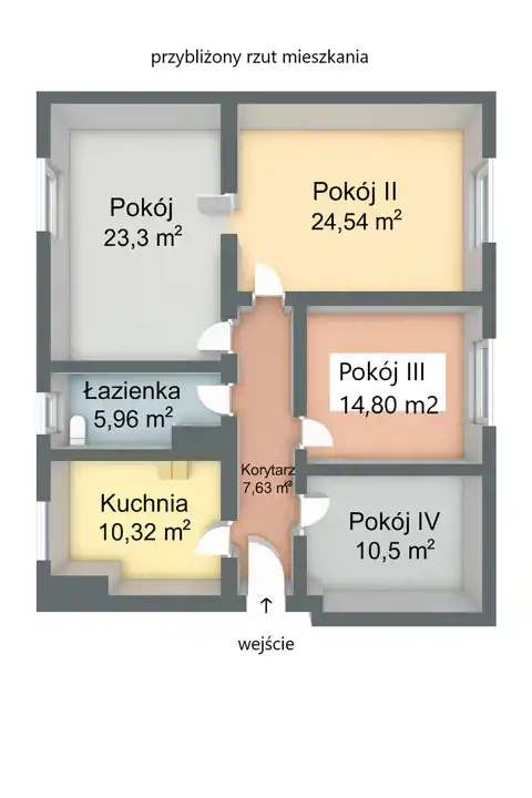 Przemyślany układ – 4 duże pokoje + kuchnia + łazienka