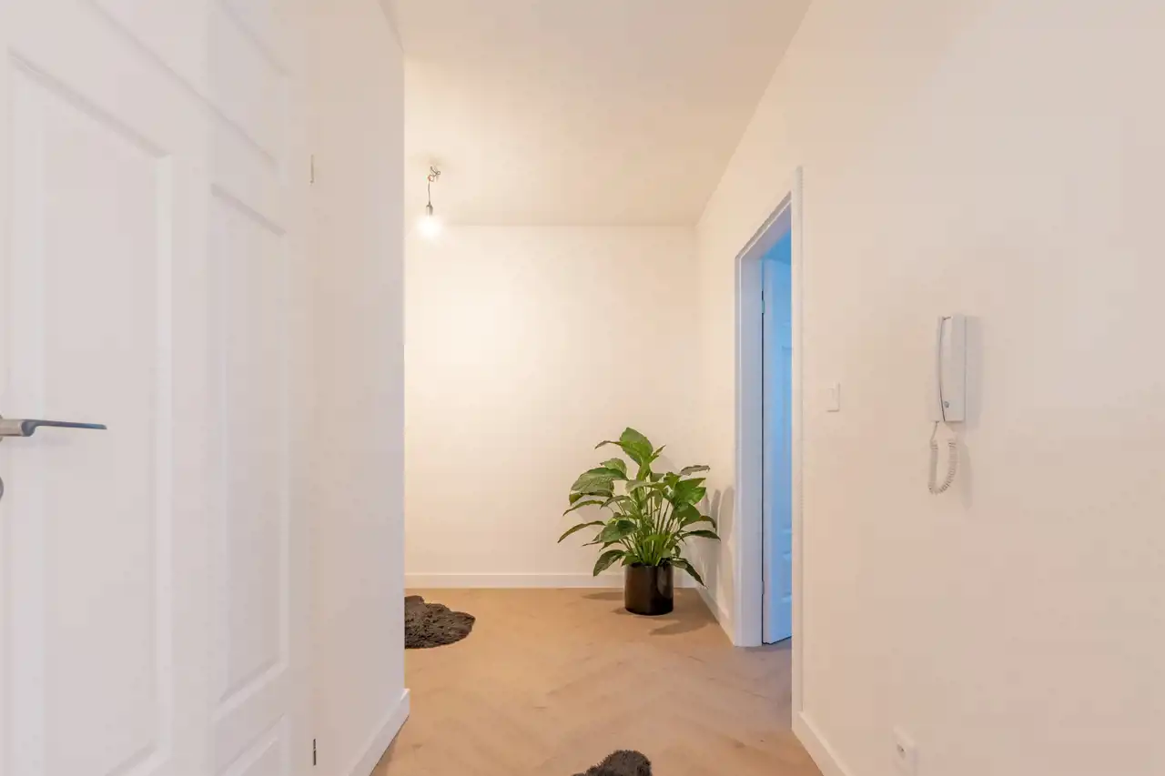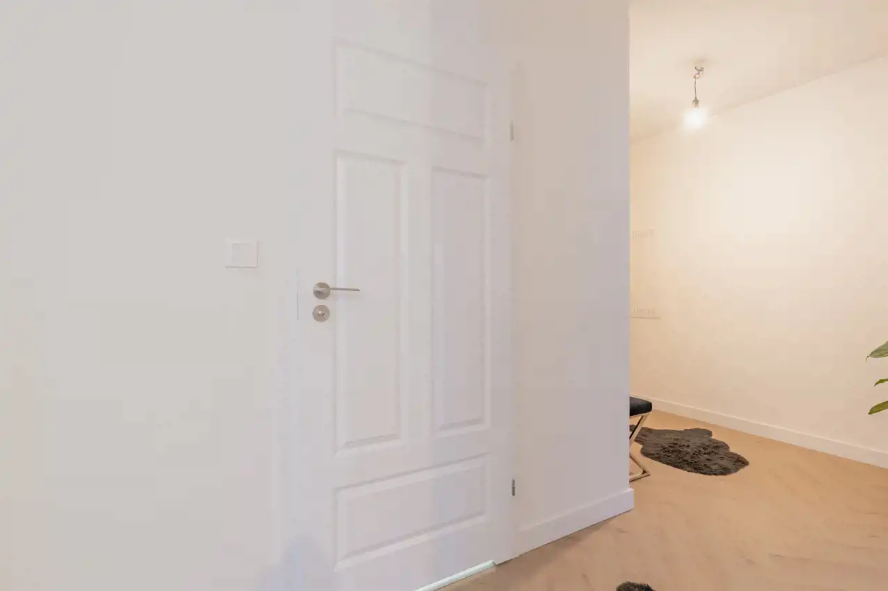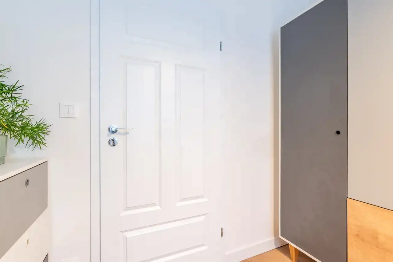 - Łazienka i przedpokój, w którym znajduje się miejsce na bardzo dużą szafę wnękową.