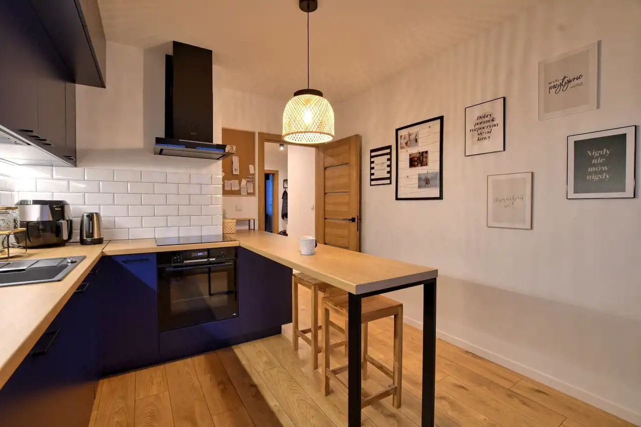 Na szczególną uwagę zasługuje kuchnia – przestronna, bardzo pojemna i zaprojektowana z myślą o komforcie użytkowania. Zastosowano w niej: