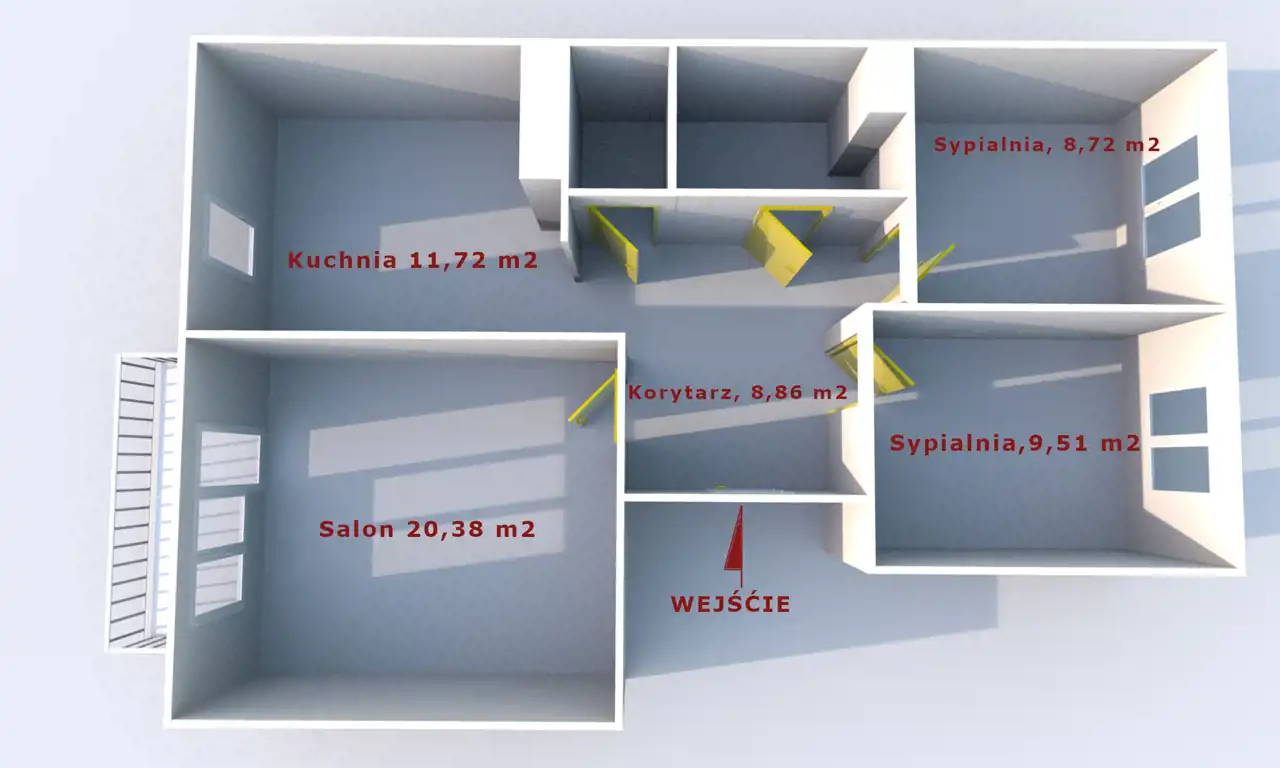 - Charakterystyka mieszkania 68.28 m2, 3 pokoje