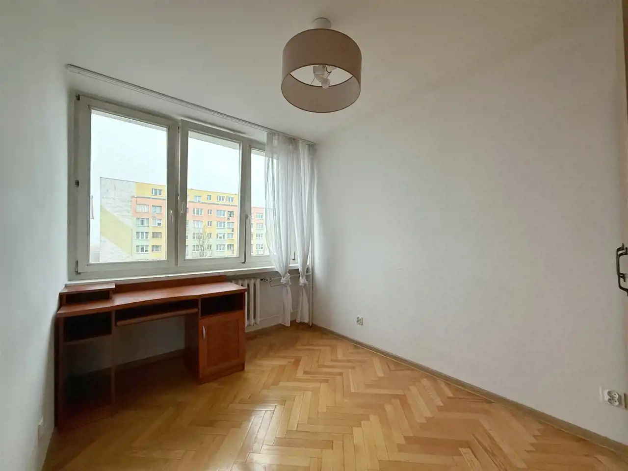 Mieszkanie składa się z pokoju połączonego z aneksem kuchennym, dwóch oddzielnych pokoi, łazienki, toalety oraz przedpokoju. W pokojach na podłodze parkiet. Widna kuchnia w zabudowie. Łazienka wyposażona w wannę.