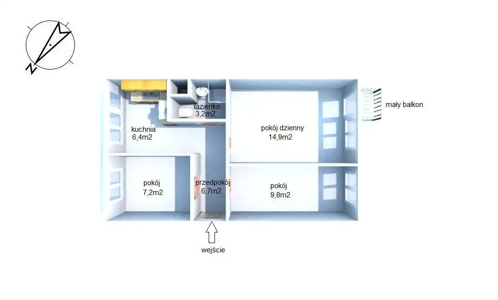 - Charakterystyka mieszkania 48.2 m2, 3 pokoje