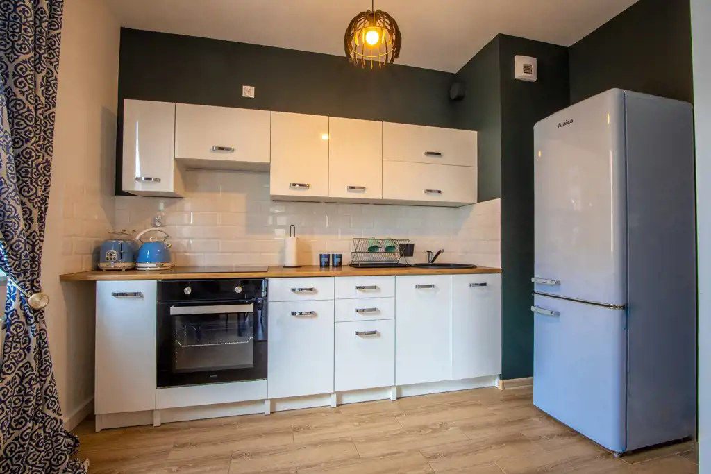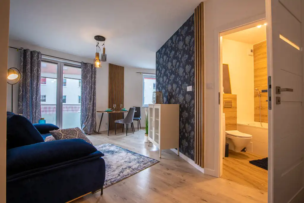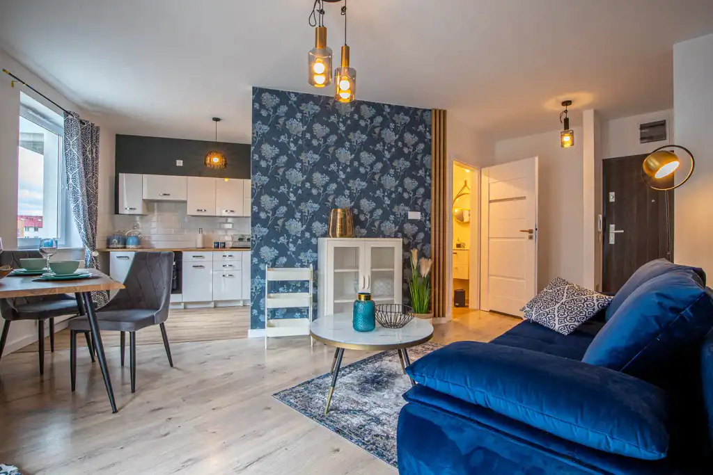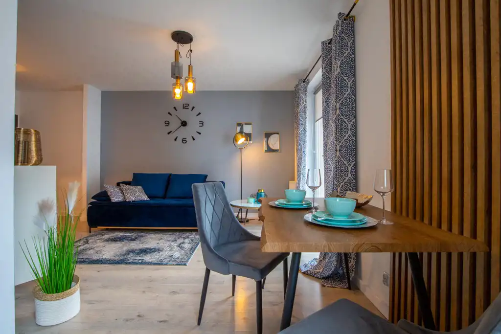 Mieszkanie zostało wyposażone we wszystkie niezbędne meble oraz urządzenia AGD i RTV. Zostało wykończone z dbałością o każdy szczegół z wykorzystaniem materiałów najwyższej jakości.