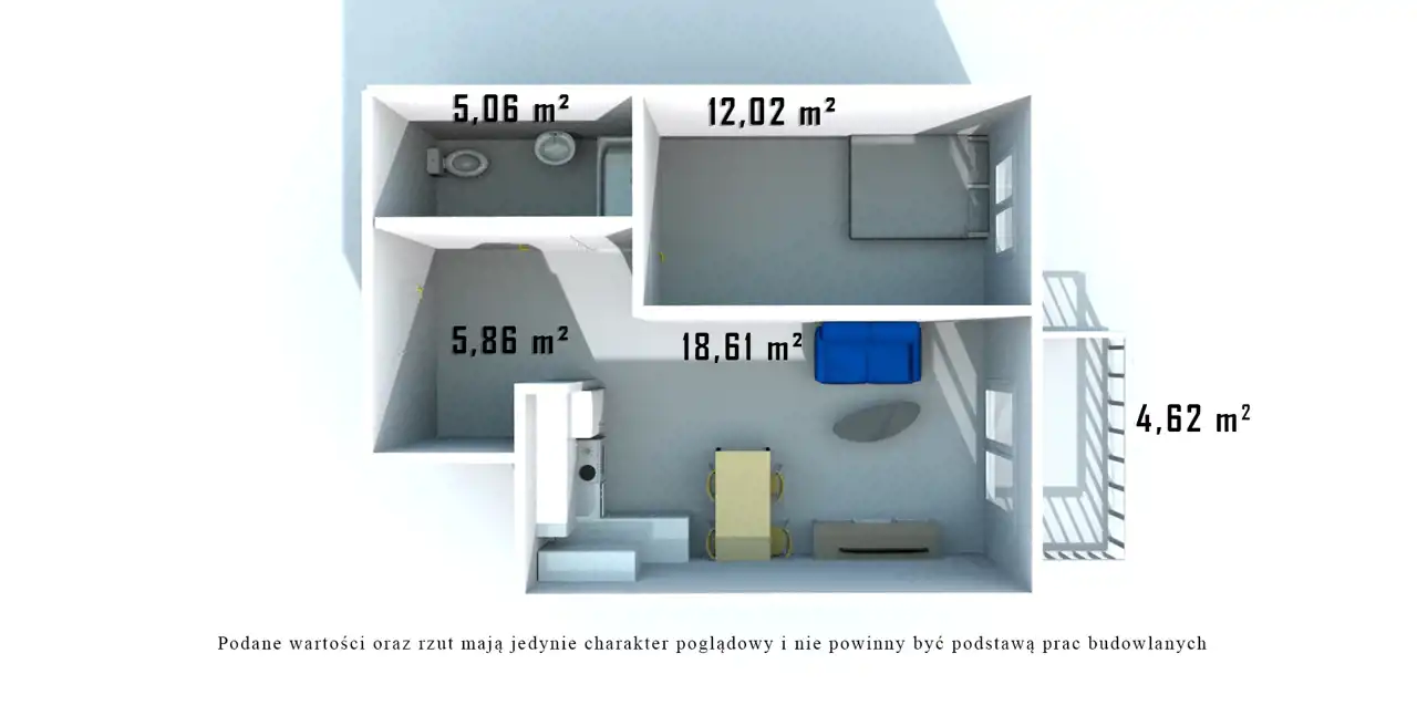 - Charakterystyka mieszkania 41.55 m2, 2 pokoje