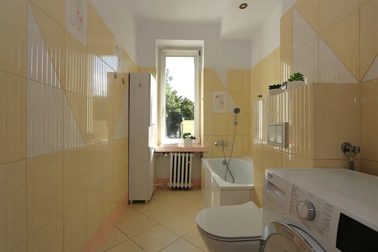 - dobrze zachowana armatura i kafle w łazience