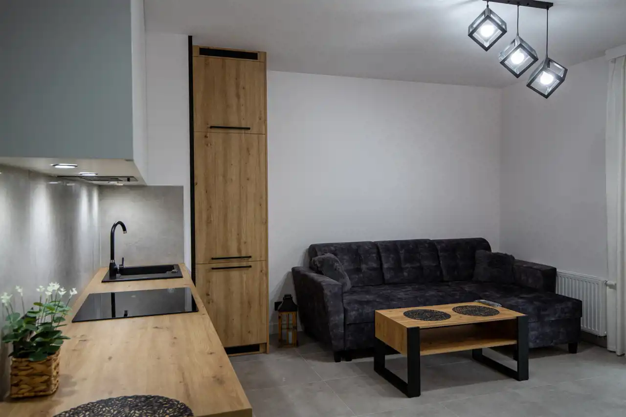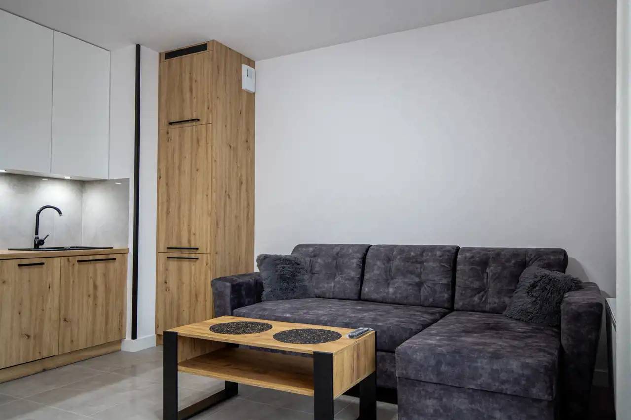 - przestronny salon z aneksem kuchennym i wyjściem na duży balkon