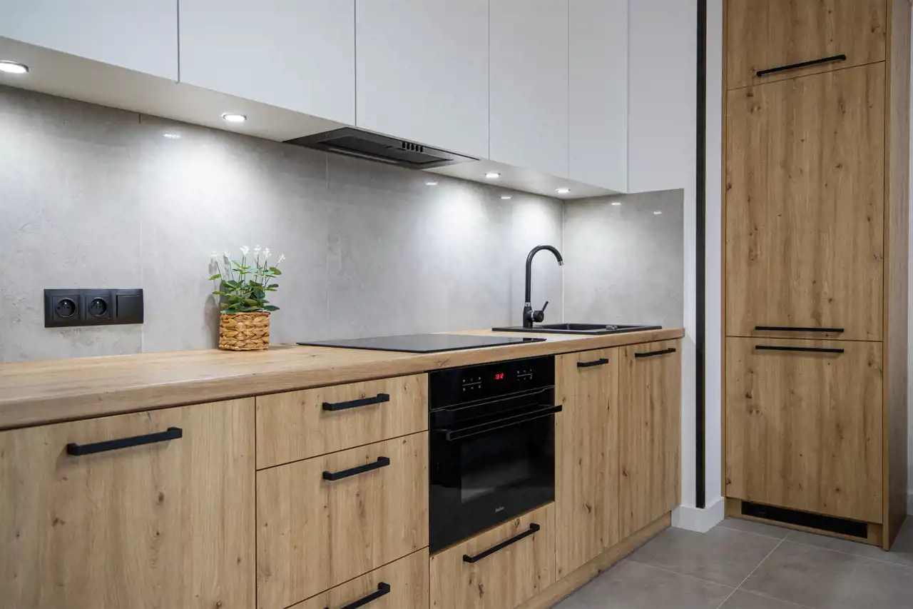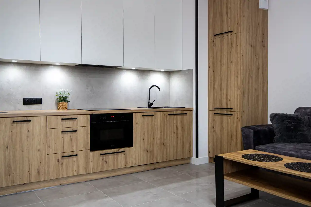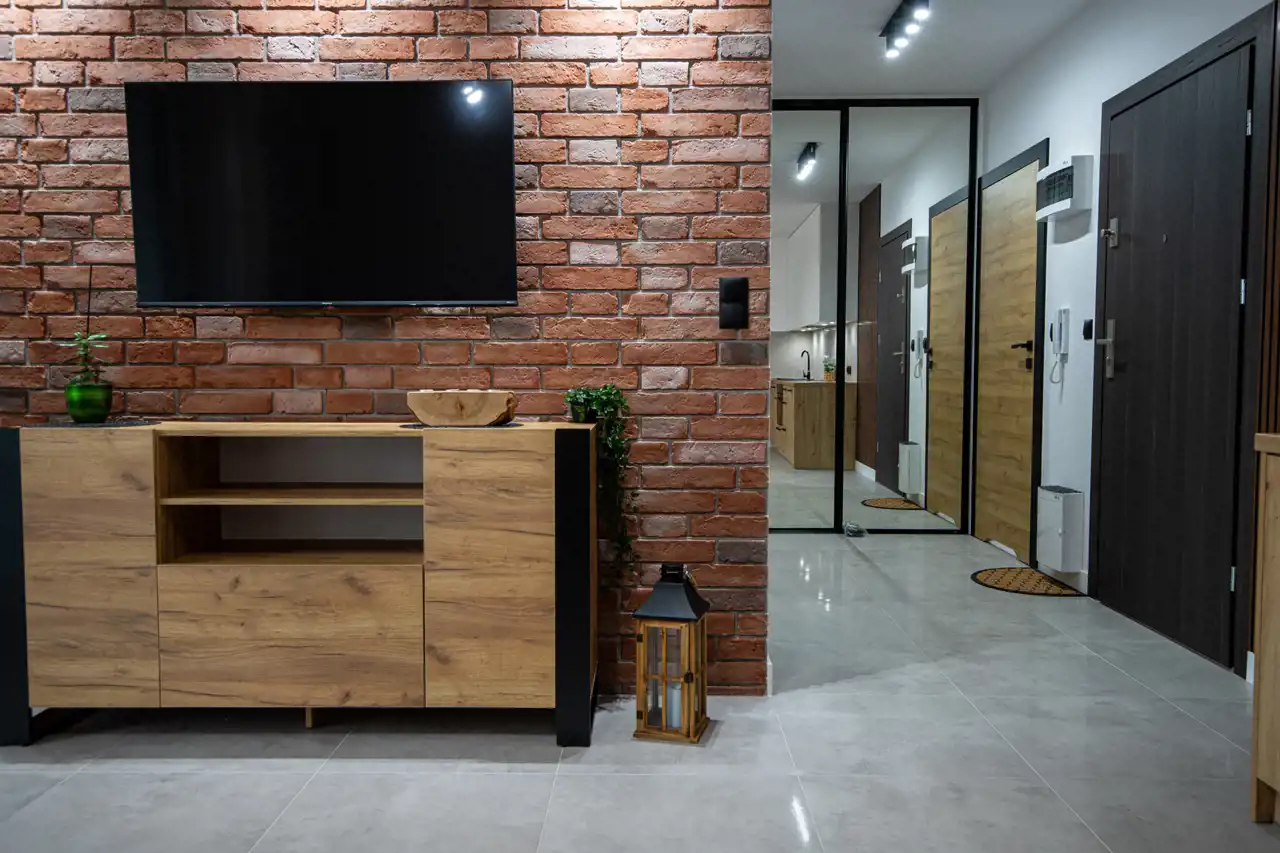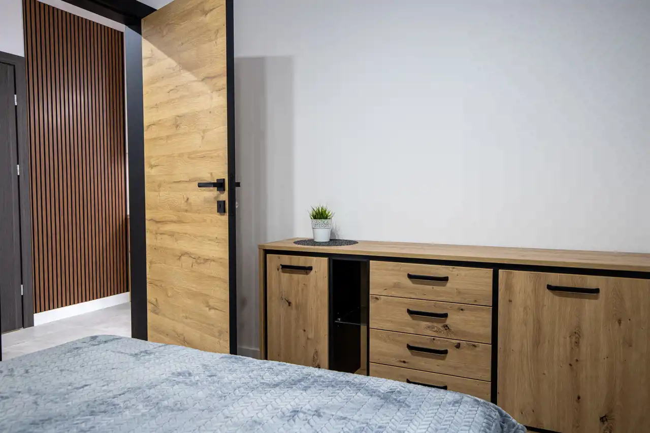Mieszkanie zostało wykończone z gustem i w nowoczesnym stylu pod okiem projektanta wnętrz z wysokiej jakości materiałów.