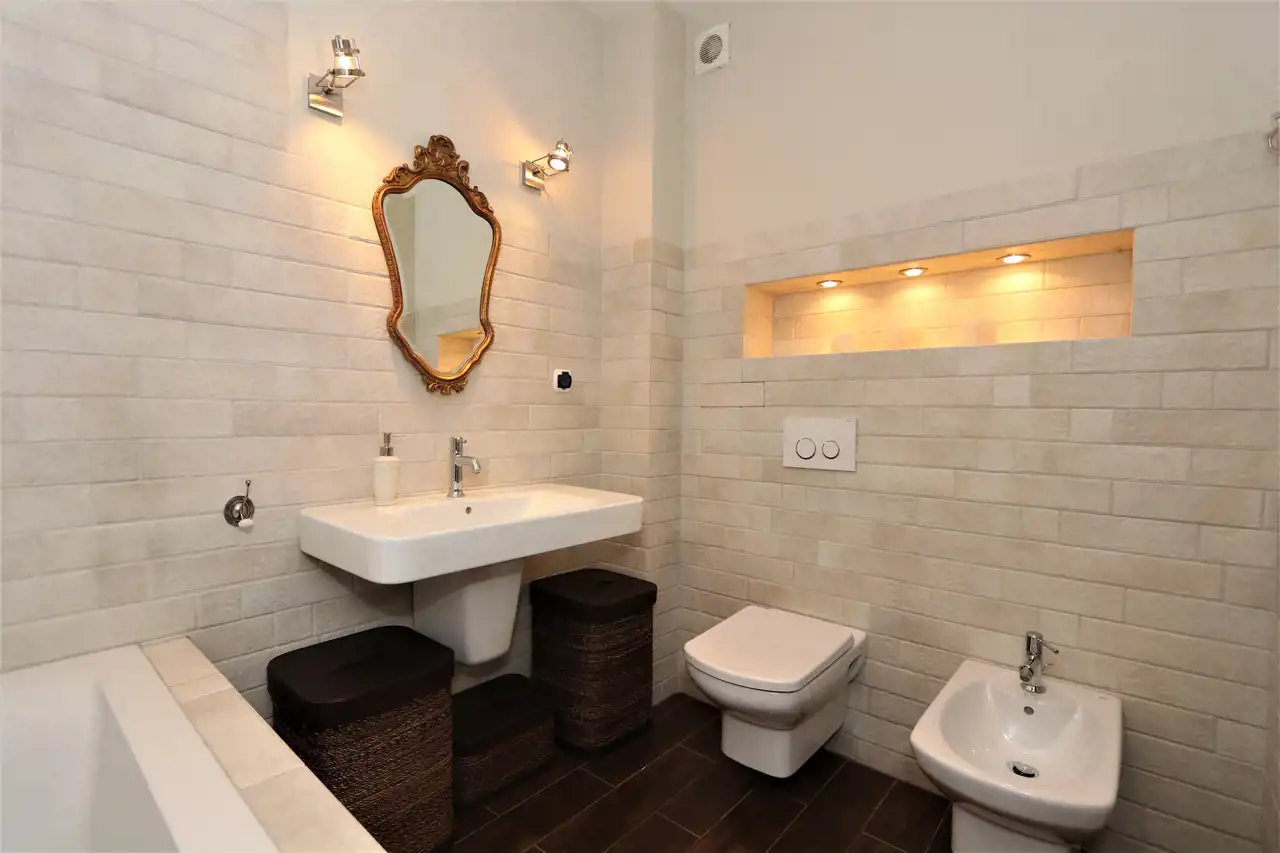 - łazienka ( wanna, wc, bidet, zlew z bardzo zadbaną armaturą )