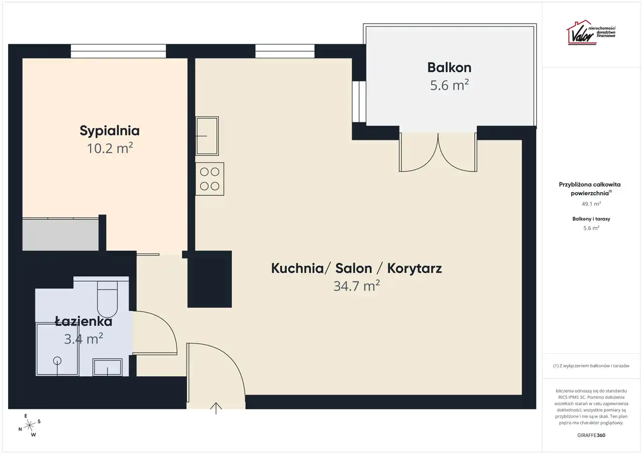 - Charakterystyka mieszkania 49.1 m2, 2 pokoje
