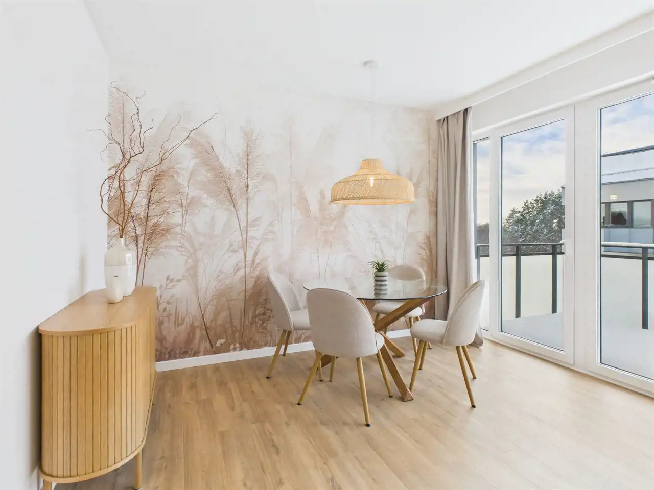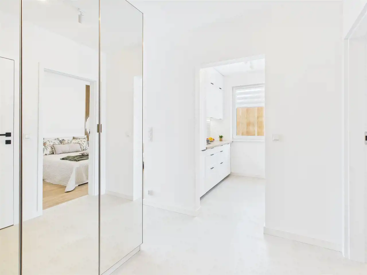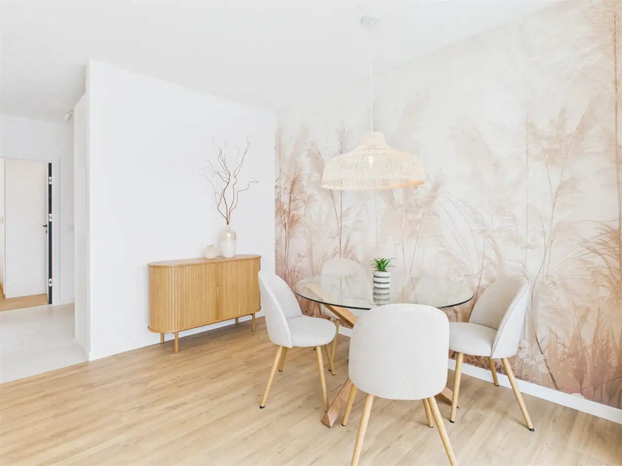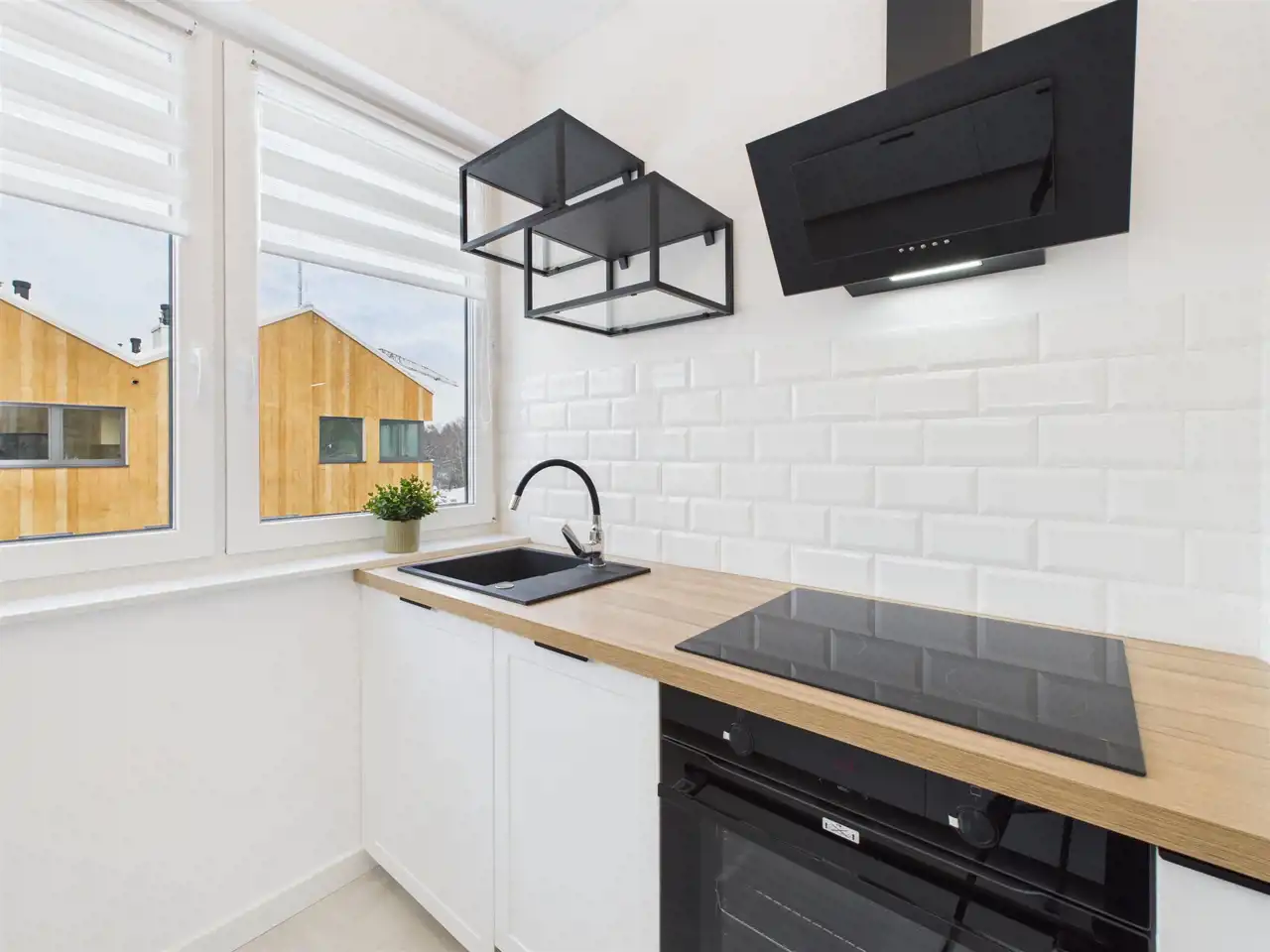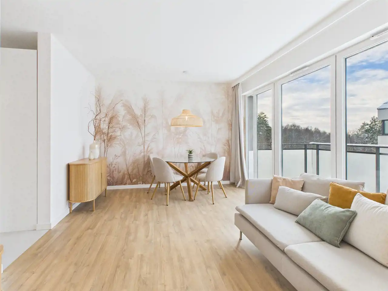 Mieszkanie urządzone jest bardzo komfortowo, w lekim stylu boho, nawiązując do niewątpliwie atrakcyjnej lokalizacji całego osiedla, położonego w otoczeniu lasu, który stanowi naturalną oazę przed miejskim zgiełkiem.