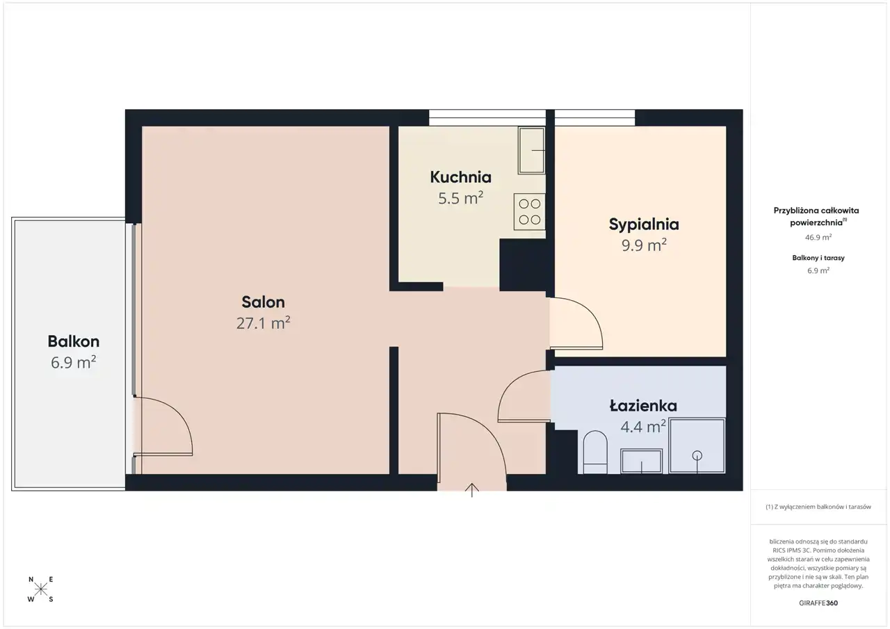 - Charakterystyka mieszkania 47 m2, 2 pokoje