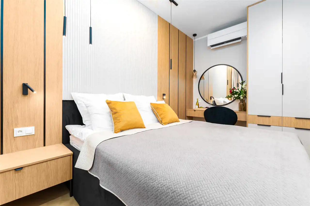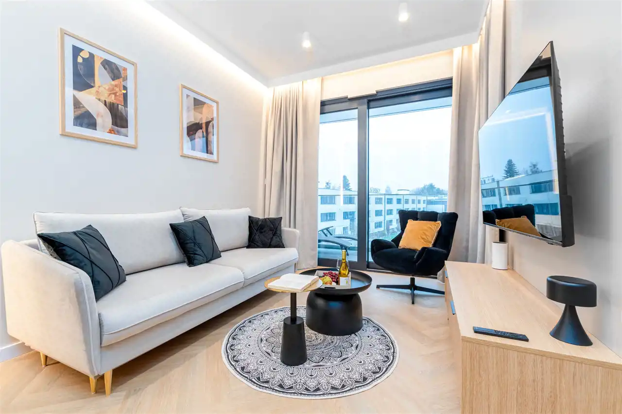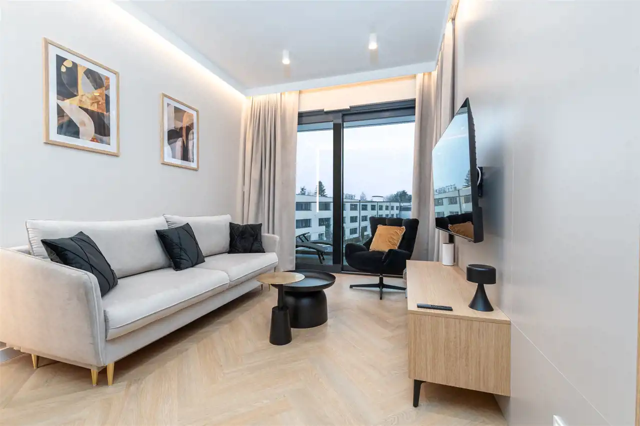 Budynek jest wyposażony w nowoczesne pompy ciepła, we wszystkich apartamentach zamiast grzejników temperaturą steruje się za pomocą klimatyzacji, którą można obsługiwać pilotem lub aplikacją.