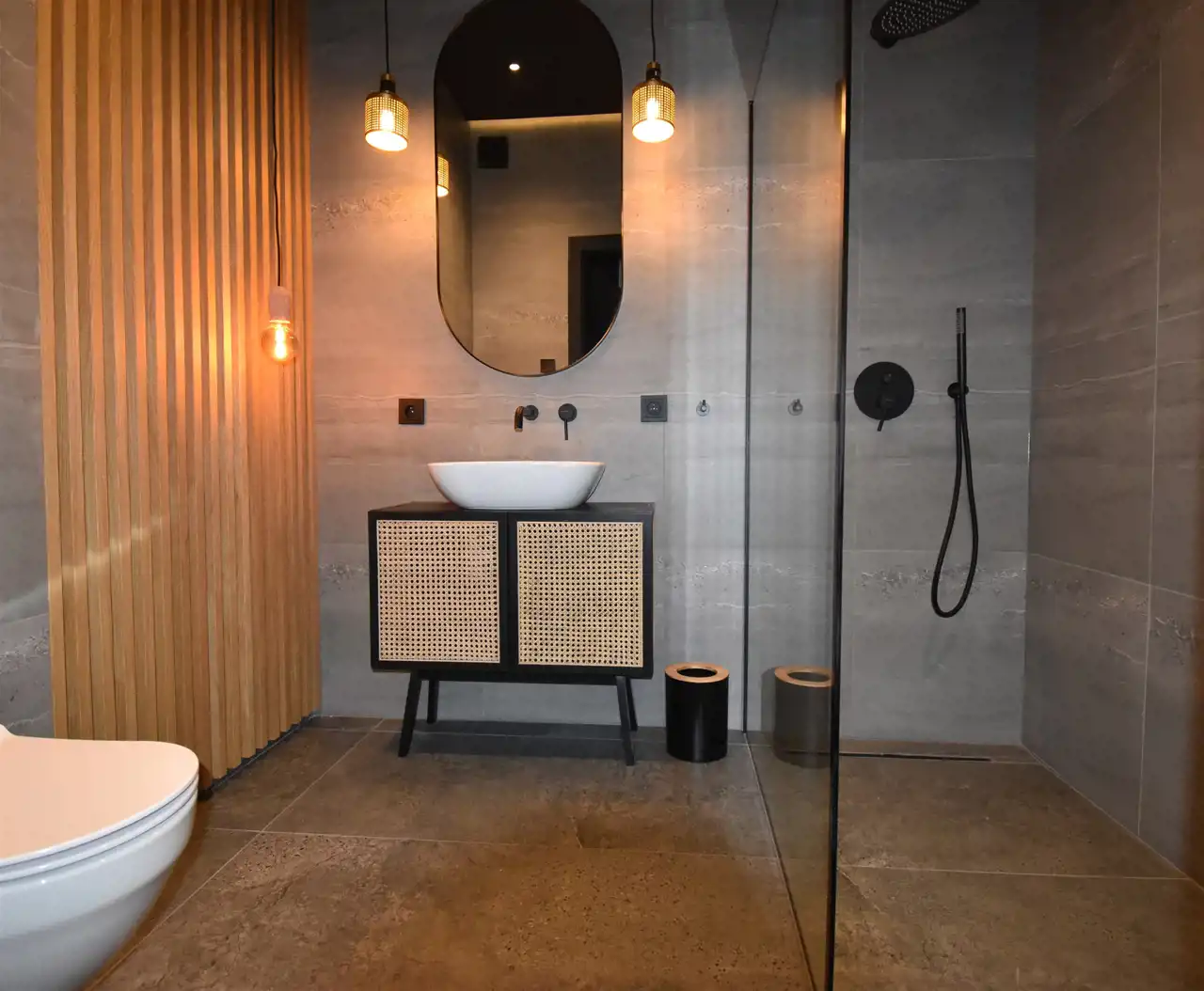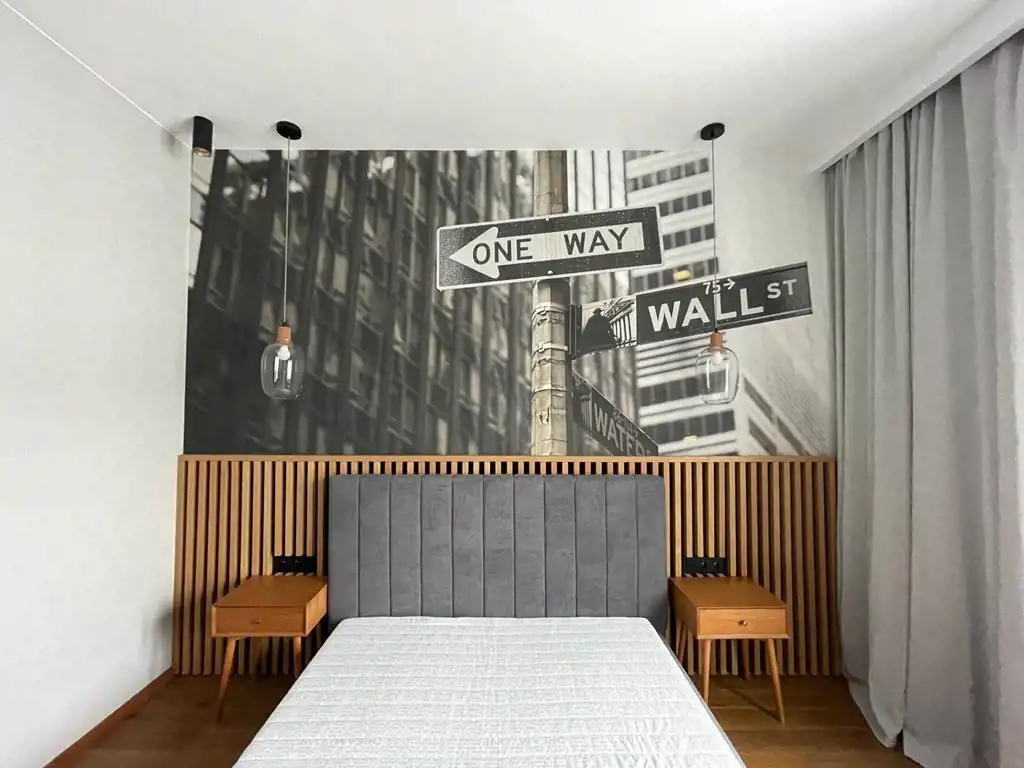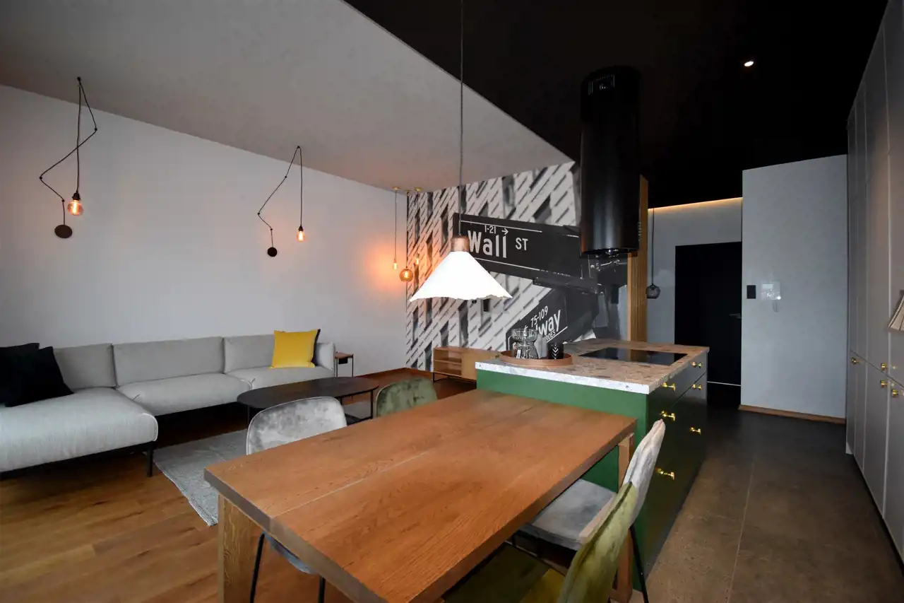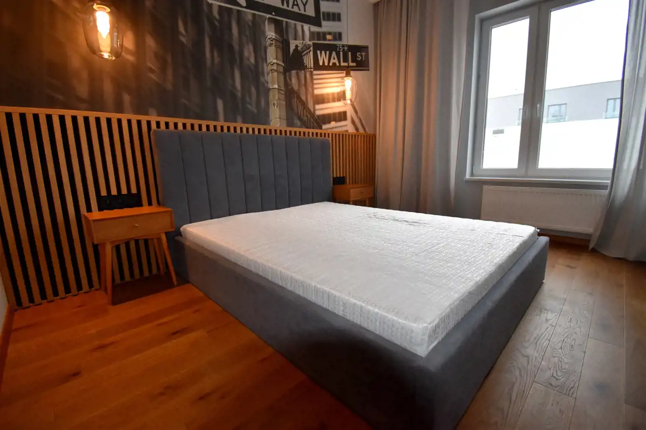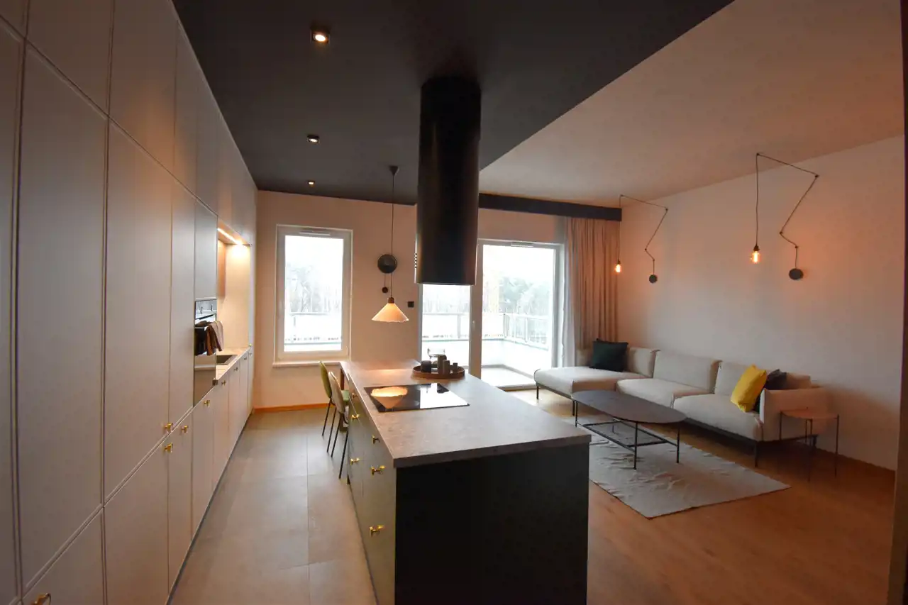 Apartament zajmuje powierzchnię 72m² i składa się z salonu z aneksem kuchennym, dwóch niezależnych sypialni, przedpokoju z szafą gospodarczą łazienki z prysznicem oraz niezależnego wc. Do wynajęcia z całkowitym wyposażeniem widocznym na zdjęciach, dodatkowo wyposażone w: odkurzacz, zestaw do mycia podłogi, żelazko, deska do prasowania, suszarka do ubrań oraz pralka.