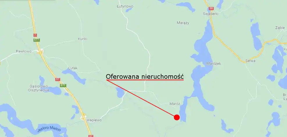 Nieruchomość położona jest na skraju wsi Maróz w otulinie pięknych lasów, Jeziora Maróz oraz rzeki Marózka, którą organizowane są wpływy kajakowe. Jezioro Maróz jest zbiornikiem rynnowym i bardzo rozległych podłużnie z wieloma ciekawymi i dzikimi przyrodniczo brzegami. W pobliżu znajdują się głównie zabudowa rekreacji indywidualnej, działki niezabudowane, a także 2 ośrodki turystyczne, gdzie znajdziemy wypożyczalnię sprzętu wodnego, plażę oraz molo. Okolica jest bogata w ścieżki piesze, rowerowe, a także szlaki kajakowe.