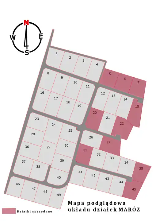 Dostępne w ofercie są działki o zróżnicowanej powierzchni i położeniu - według mapy na zdjęciu.