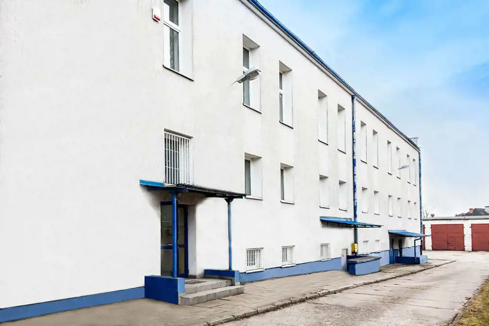 Budynek biurowo-mieszkalny – obiekt wolnostojący, dwukondygnacyjny, podpiwniczony, murowany, wykonany w technologii tradycyjnej. Na parterze budynku zlokalizowane są pomieszczenia biurowe oraz sanitariaty. W prawym skrzydle budynku znajdują się trzy mieszkania służbowe/zakładowe. W budynku znajdują się dwie klatki schodowe.