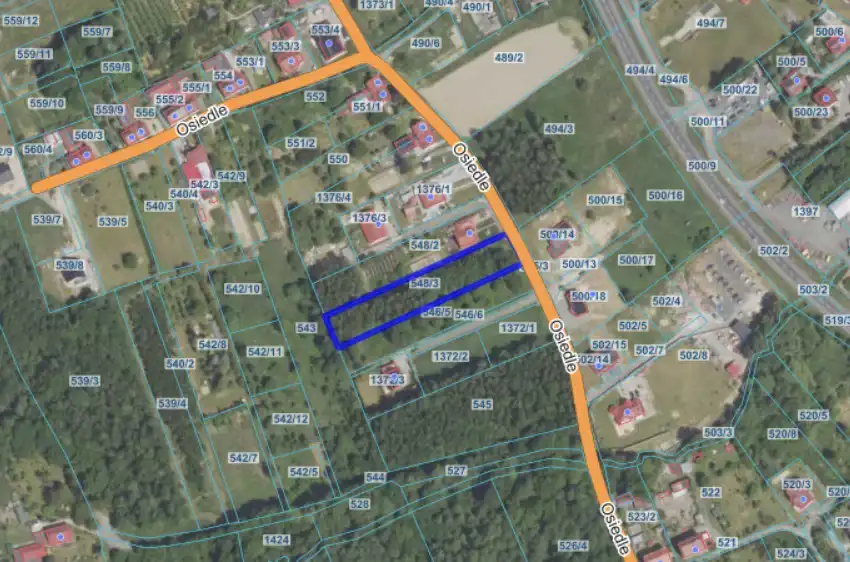Sprzedam działkę o nr ewidencyjnym 548/3 o pow. 2692 m2 położoną w miejscowości Olszyna ul. Osiedle w powiecie lubańskim. Działka ma wymiary 23x128 m, posiada bezpośredni dostęp do drogi publicznej, w okolicy jest zabudowa mieszkaniowa jednorodzinna. Miejscowy plan zagospodarowania przestrzennego obejmuje działkę pod 37Mn zabudowa mieszkaniowa. Działka plaska, porośnięta trawą.
