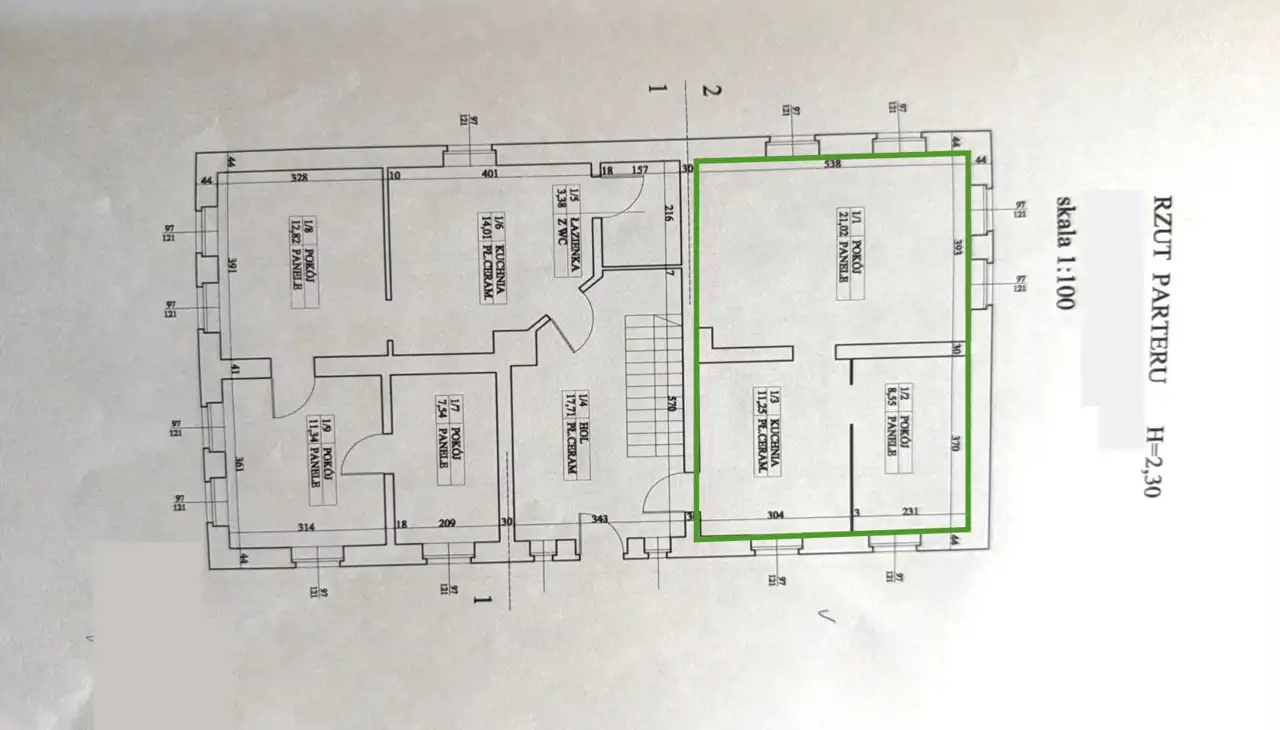 Wysokość pomieszczeń: ok. 2,30 m