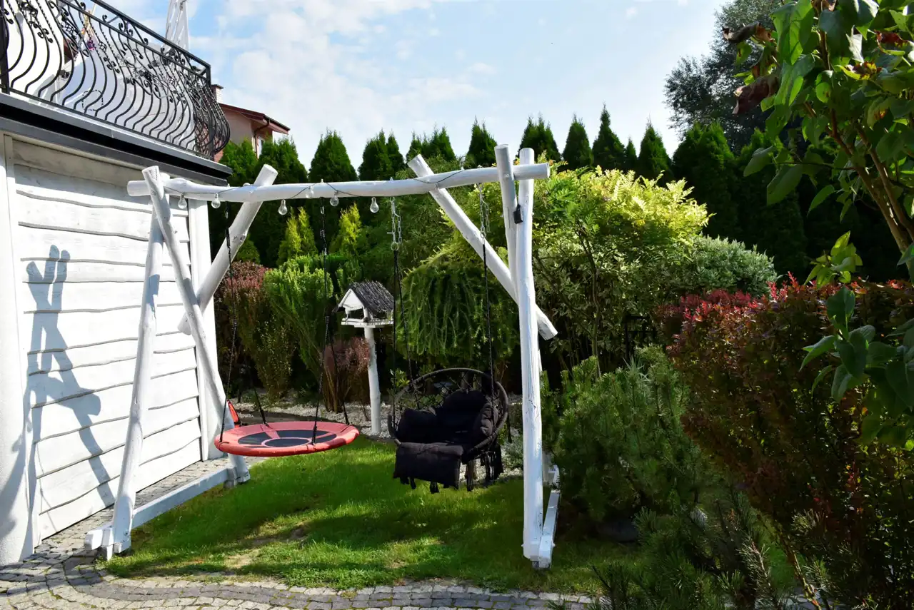 Na ogrodzie mamy też drewniane pomieszczenie na skład narzędzi ogrodniczych, kosiarki, rowerów, itp.
