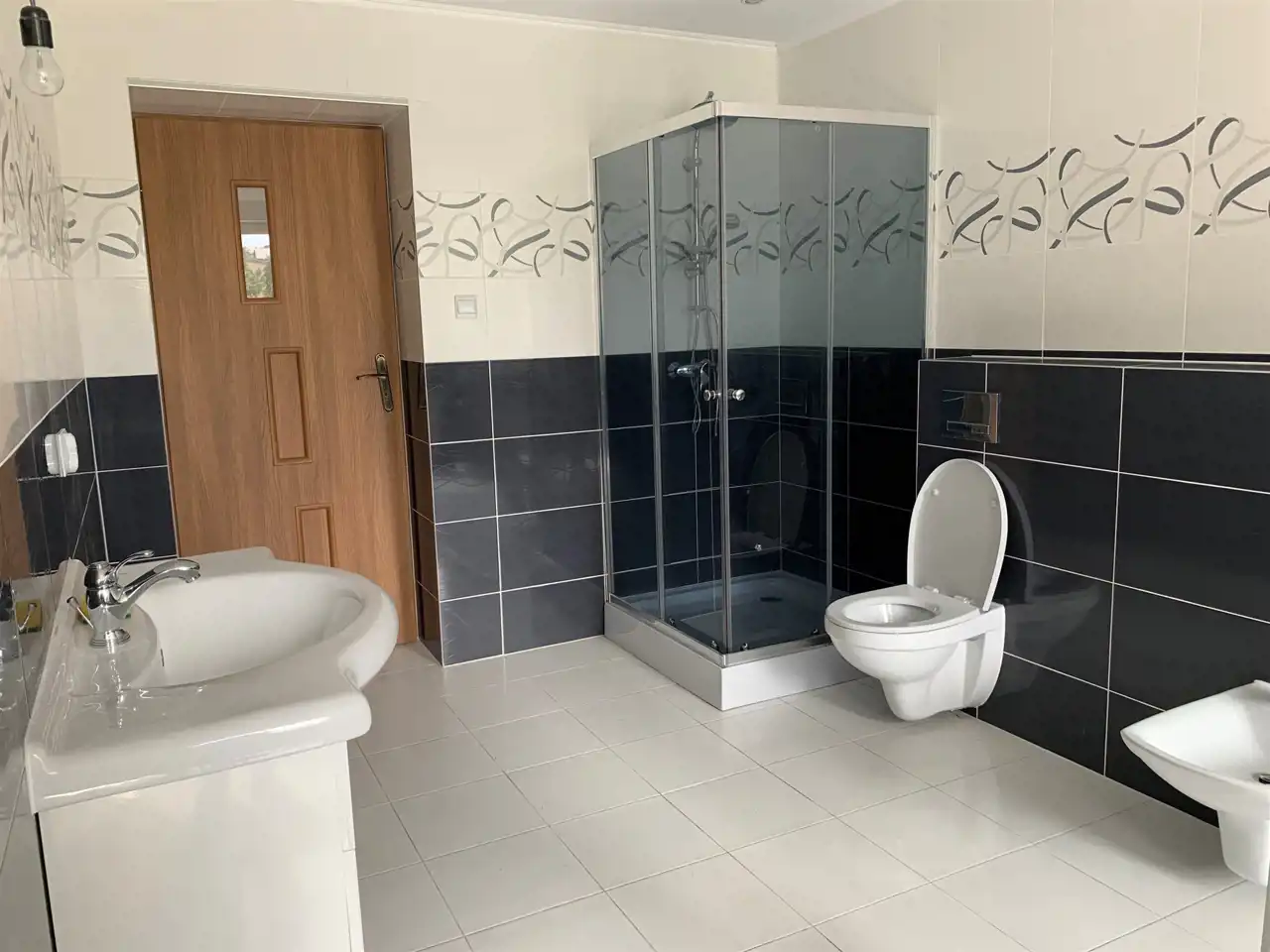 +Budynek 3-kondygnacyjny po całkowitej przebudowie w 2019 roku. W trakcie przebudowy zmieniono przeznaczenie budynku uzyskując powierzchnię mieszkalną użytkową 380 m2, wymienione zostały wszystkie instalacje (gazowa, elektryczna, hydrauliczna, kanalizacyjna, zamontowano kocioł gazowy Buderus, dobudowano taras oraz duży balkon od strony południowej, przekształcono układ pomieszczeń, uzyskując 8 pokoi, ogromny salon o powierzchni 80 m2 połączony z otwartą jadalnią oraz kuchnią i 3 łazienki.
