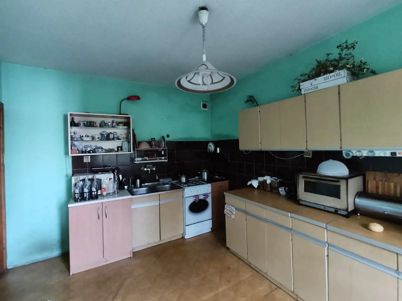 Nieruchomość wymaga odświeżenia i modernizacji, ale w zamian oferuje dużą działkę i nieograniczone możliwości aranżacji według własnych potrzeb.