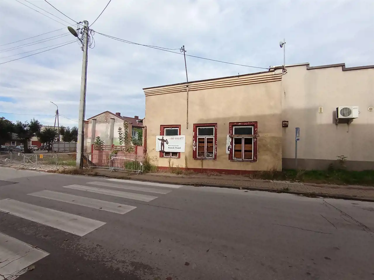 Na powyższy budynek zostały wydane warunki zabudowy na rozbudowę, nadbudowę i zmianę sposobu użytkowania budynku mieszkalnego na budynek usługowo-handlowy wraz z niezbędną infrastrukturą techniczną.