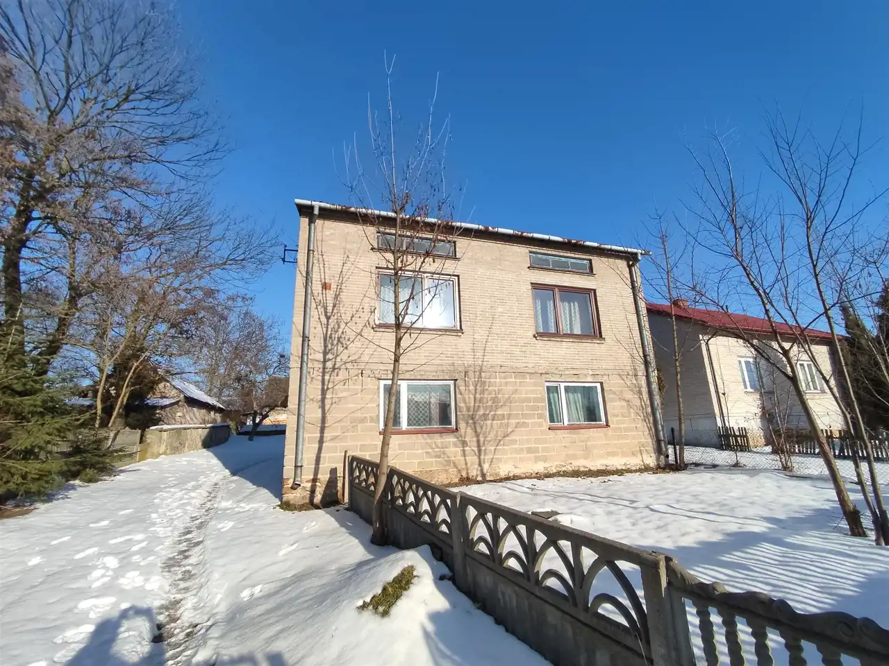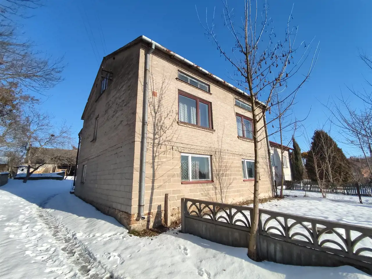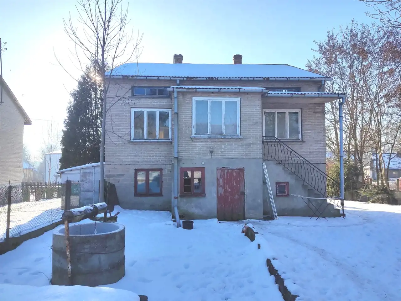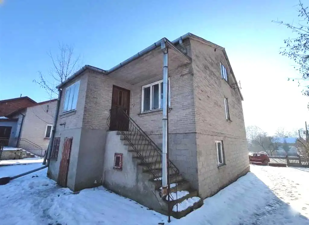 - Dom wybudowany z cegły i betonu komórkowego