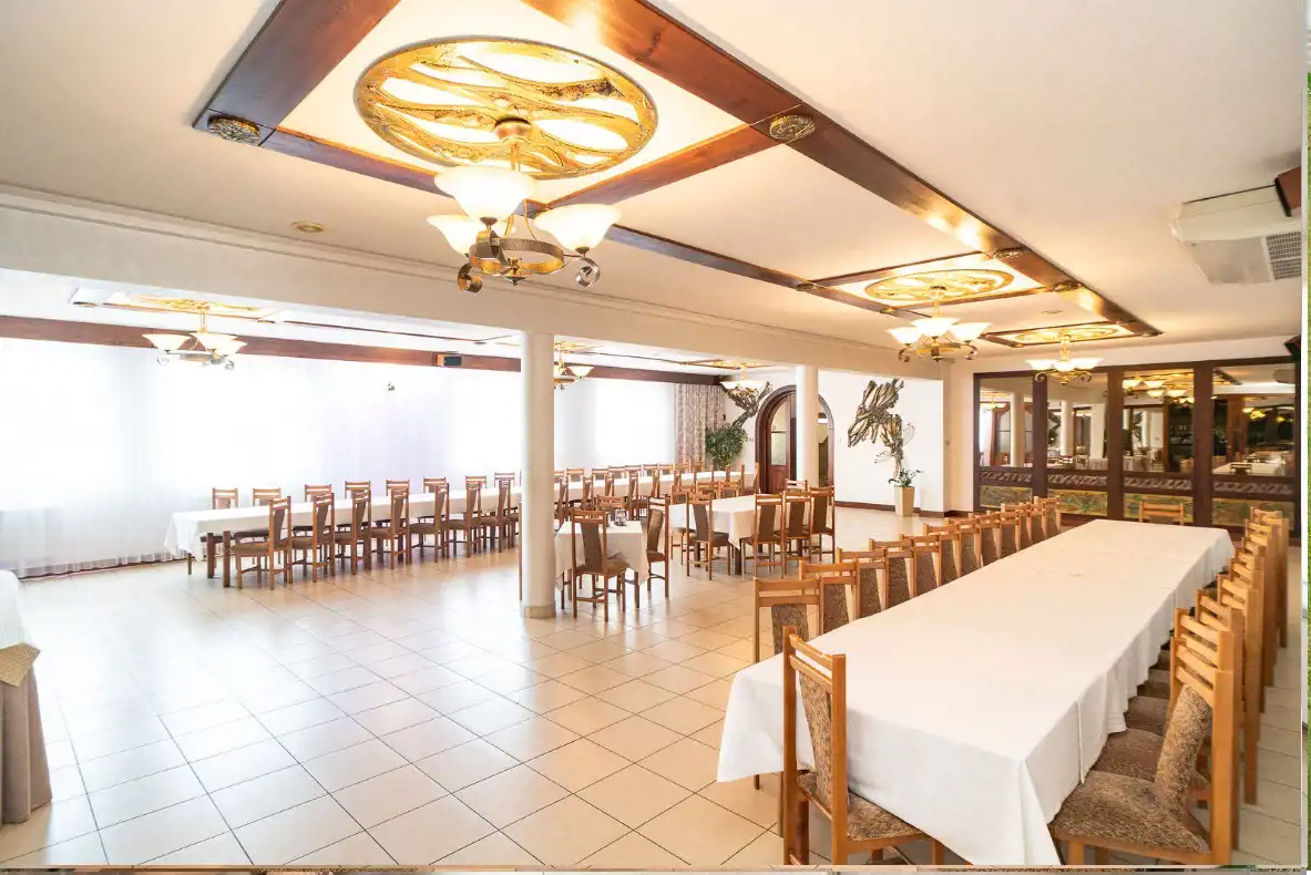 Obiekt przystosowany do obsługi dużych wydarzeń oraz bieżącej działalności restauracyjnej. Układ pozwala na równoległą organizację kilku imprez.