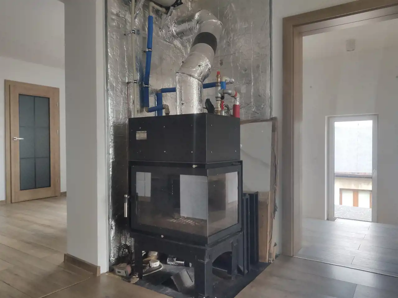 - Ogrzewanie: własna kotłownia na pellet + kominek z funkcją ogrzewania całego piętra.