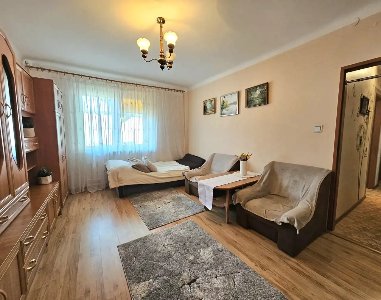 W mieszkaniu okna PCV jedno wymieniono w tym roku, w całym mieszkaniu w pokojach panele, zostały także zrobione gładzie. Łazienka do remontu, a reszta pomieszczeń do odświeżenia. Meble kuchenne w dobrym stanie. Blok z cegły wybudowany w latach 80-tych, mieszkanie jednostronne, środkowe. Do mieszkania przynależy piwnica. Kuchnia wyposażona w meble pod wymiar, gaz z butli, podzielniki ciepła.