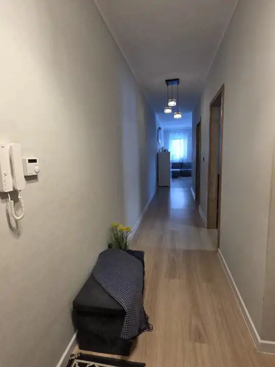- Przestronny korytarz o powierzchni 12,80 m² z szafą pod zabudowę.