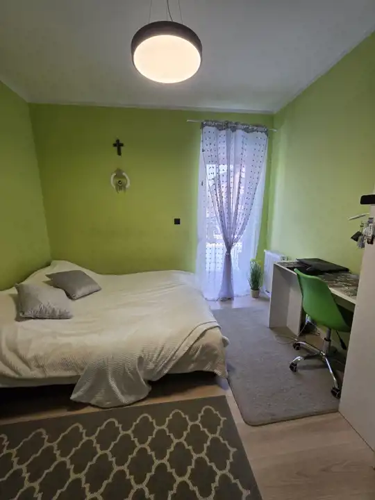- Drugi pokój o powierzchni 9,2 m², również z wyjściem na taras – doskonały jako pokój dziecięcy lub gabinet.