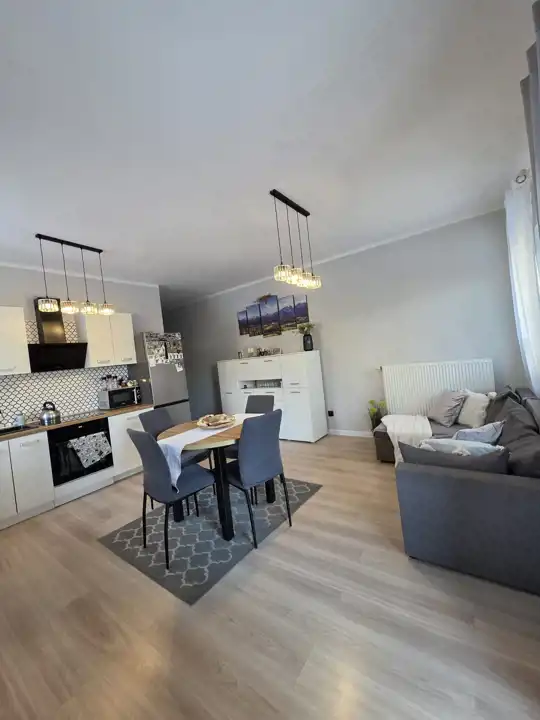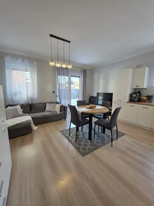 - Salon z aneksem kuchennym o powierzchni 22,2 m² – jasna, otwarta przestrzeń z wyjściem na taras i ogród, idealna do wspólnego spędzania czasu.