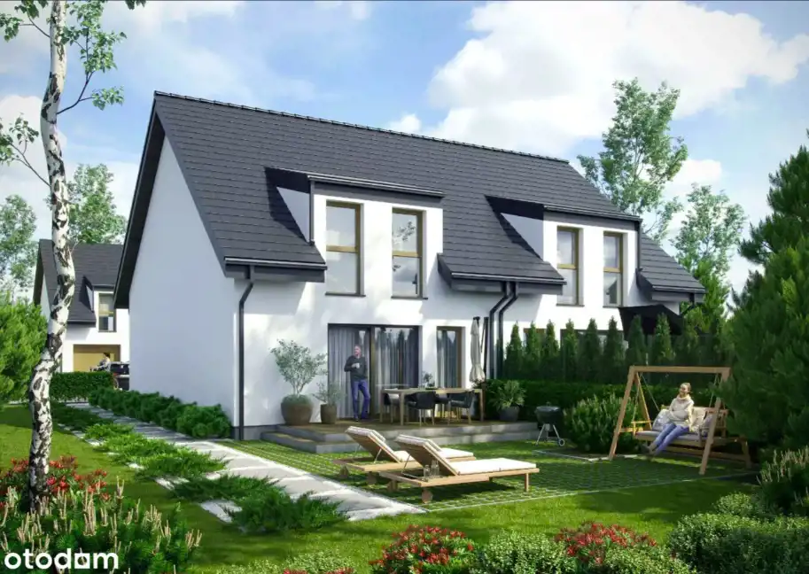 Funkcjonalny i przestronny dom jednorodzinny dwulokalowy o powierzchni 115 m², usytuowany na działce ok. 330 m² (660 m² dla całego bliźniaka).