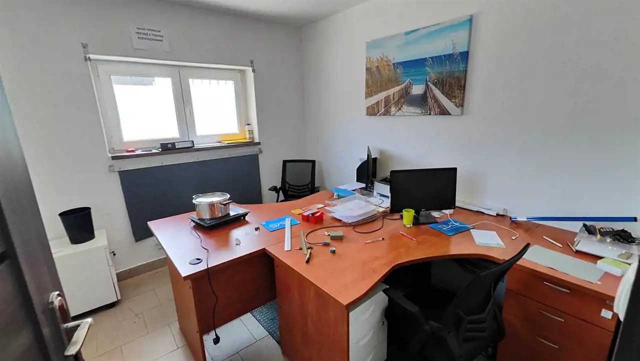 Hala kryta dachem płaskim z dostępnymi mediami: prąd, woda, gaz. aktualnie hala nie jest ogrzewana z wyjątkiem części biurowej ogrzewanej grzejnikami elektrycznymi ,aczkolwiek jest możliwość podłączenia ogrzewania. Hala wyposażona jest w bramę segmentową, oraz posiada wydzielone zaplecze biurowe-dwa pomieszczenia o przeznaczeniu biurowym, plus indywidualną ubikację. Dojazd drogą asfaltową, dostępne miejsca postojowe dla najemcy oraz klientów. Minimalny okres najmu: 1 rok. Wynajmujący wystawia fakturę VAT, podana stawka czynszu najmu w kwocie brutto uwzględniającej podatek od towarów i usług VAT (26 zł/netto/m2). Dodatkowo płatne media według faktycznego zużycia.