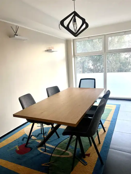 ✅ Do wspólne korzystania - pomieszczenia ze stołem konferencyjnym wraz z krzesłami, tablicą interaktywną , a także główna sala gdzie znajduje się wolne biurko
