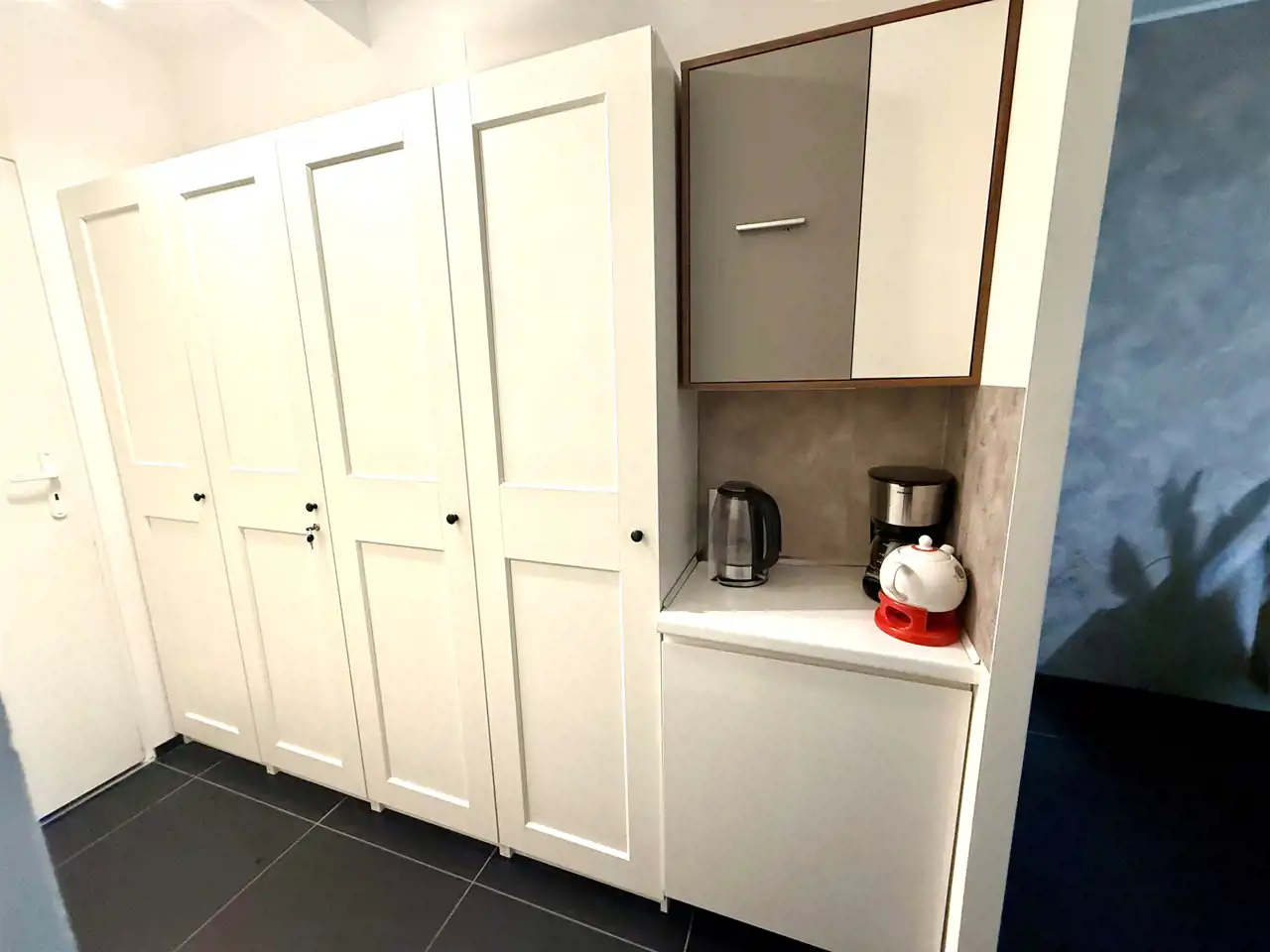 ✅ Do wspólnego korzystania aneks kuchenny gdzie znajduje się czajnik, mikrofalówka, express do kawy, naczynia kuchenne