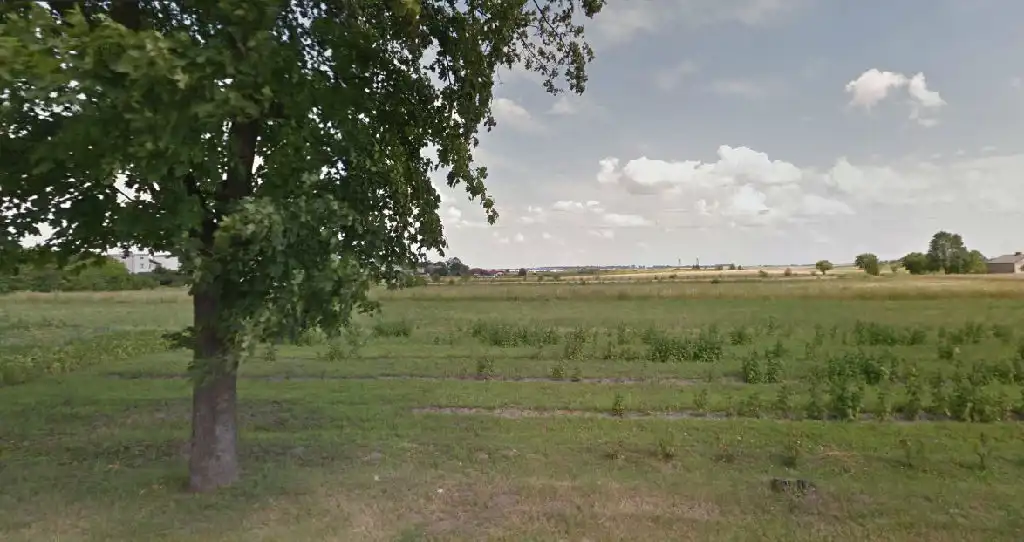 Dojazd drogą utwardzoną, obok osiedla domów jednorodzinnych.