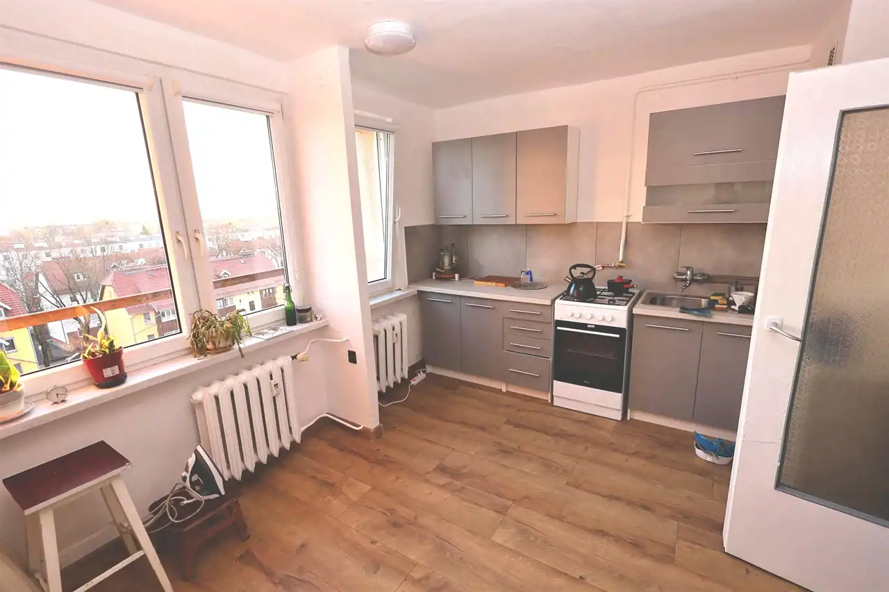 Standard: Mieszkanie odświeżone, z nowymi panelami w kuchni i przedpokoju oraz odmalowanymi ścianami.
