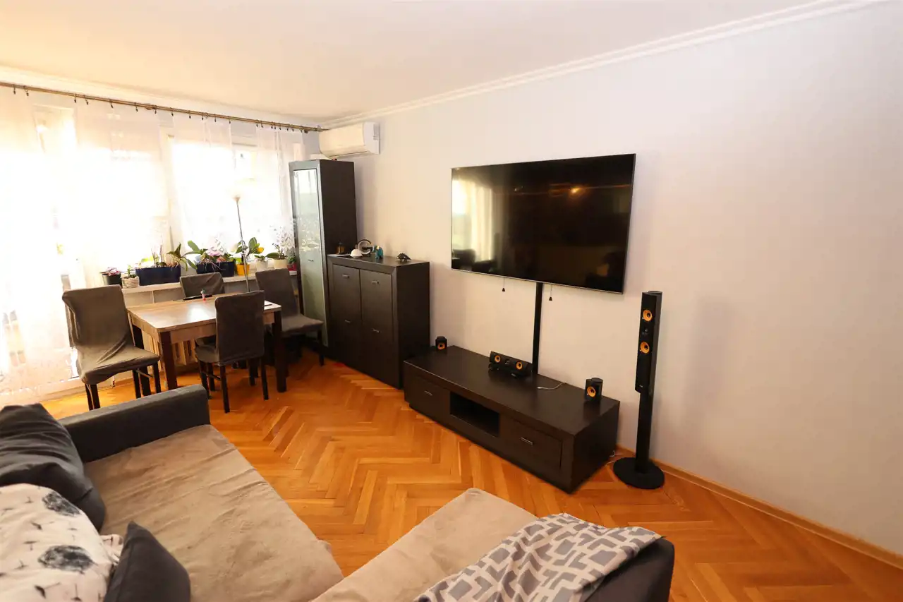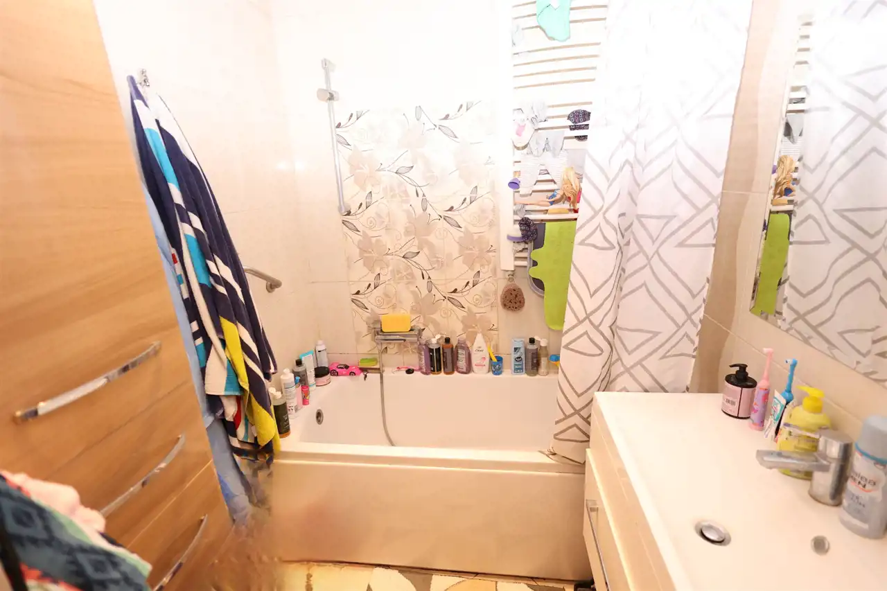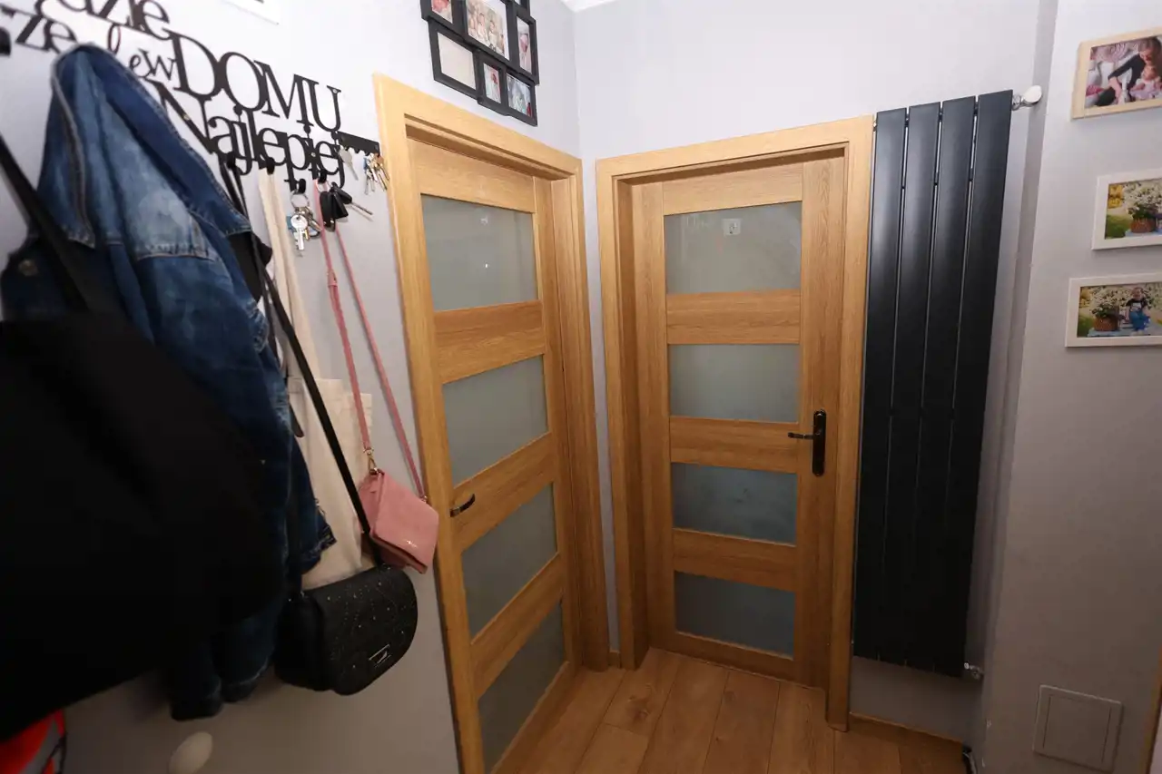 Mieszkanie jest zadbane i gotowe do zamieszkania. Na podłogach znajdziemy elegancki parkiet oraz panele. Komfort w upalne dni zapewnia klimatyzacja. Okna nowego typu PCV, co gwarantuje dobrą izolację akustyczną i termiczną.