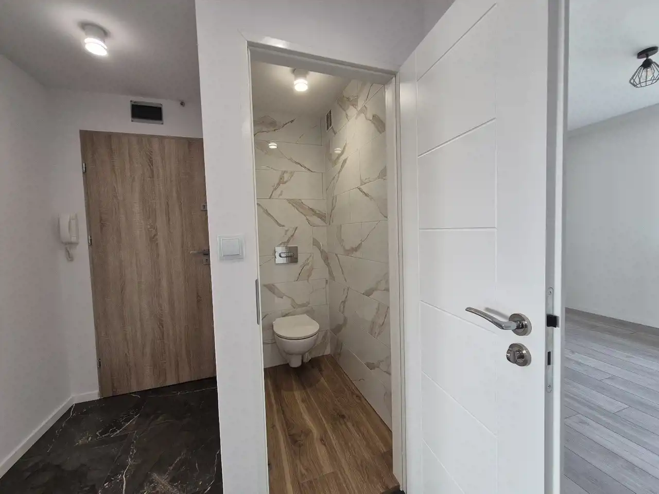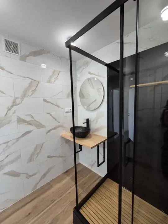 Mieszkanie przeszło całkowity remont - wszystkie instalacje (elektryczna, wod.-kan.), wymienione podłogi (kafle, panele), wyremontowane ściany i sufity - gładzie, tapety, lamele, beton architektoniczny czy podwieszane sufity.